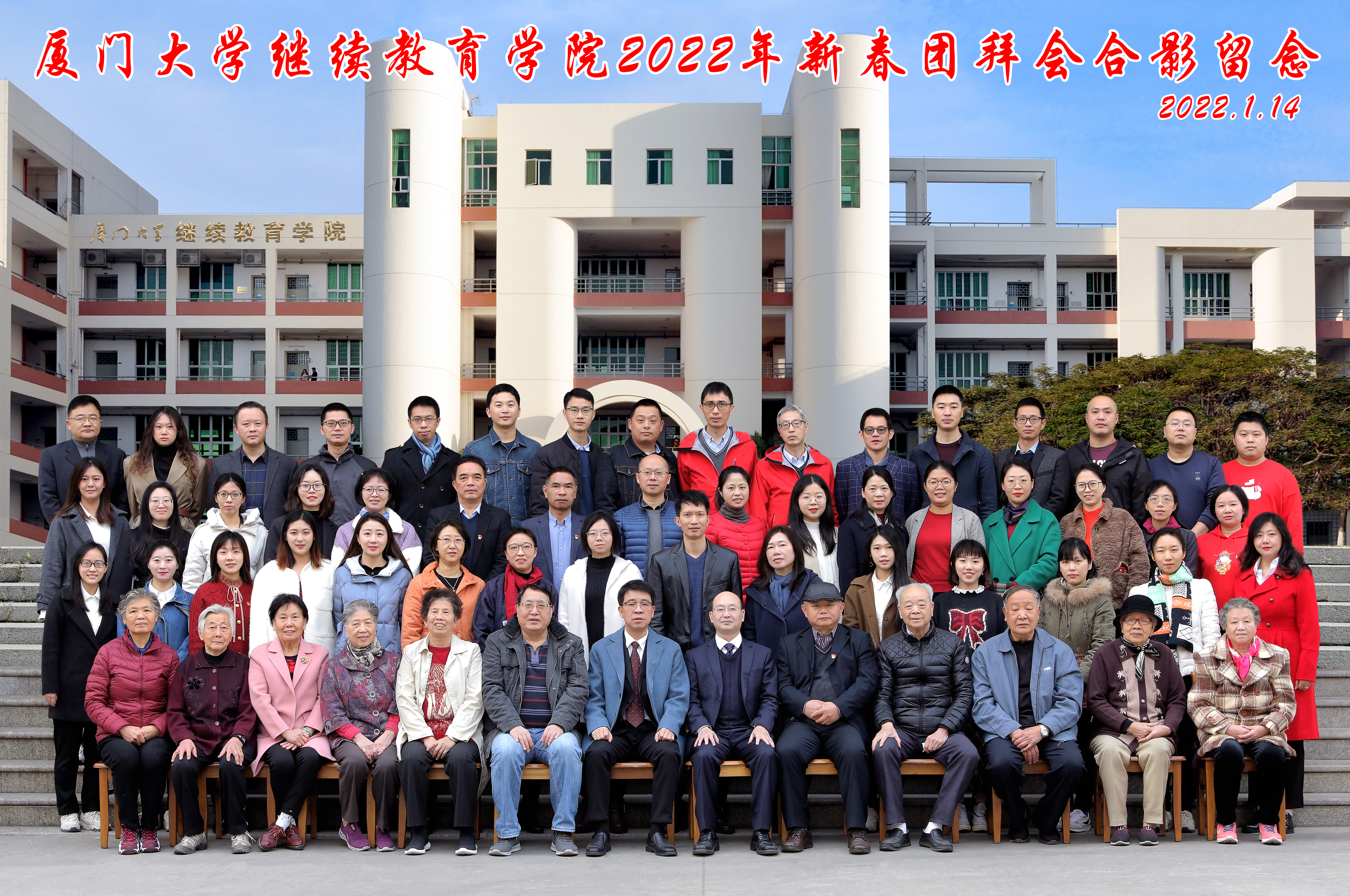 1月14日上午,继续教育学院在海韵学生公寓二期食堂三楼报告厅举办了2022壬寅虎年新春团拜会。继续教育管理处孙梓光处长、谢斌剑科长,继续教育学院领导班子全体成员、学院全体在职教职工、离退休教职工及合作单位驻院办公人员齐聚一堂,载歌载舞、欢声笑语迎新年。