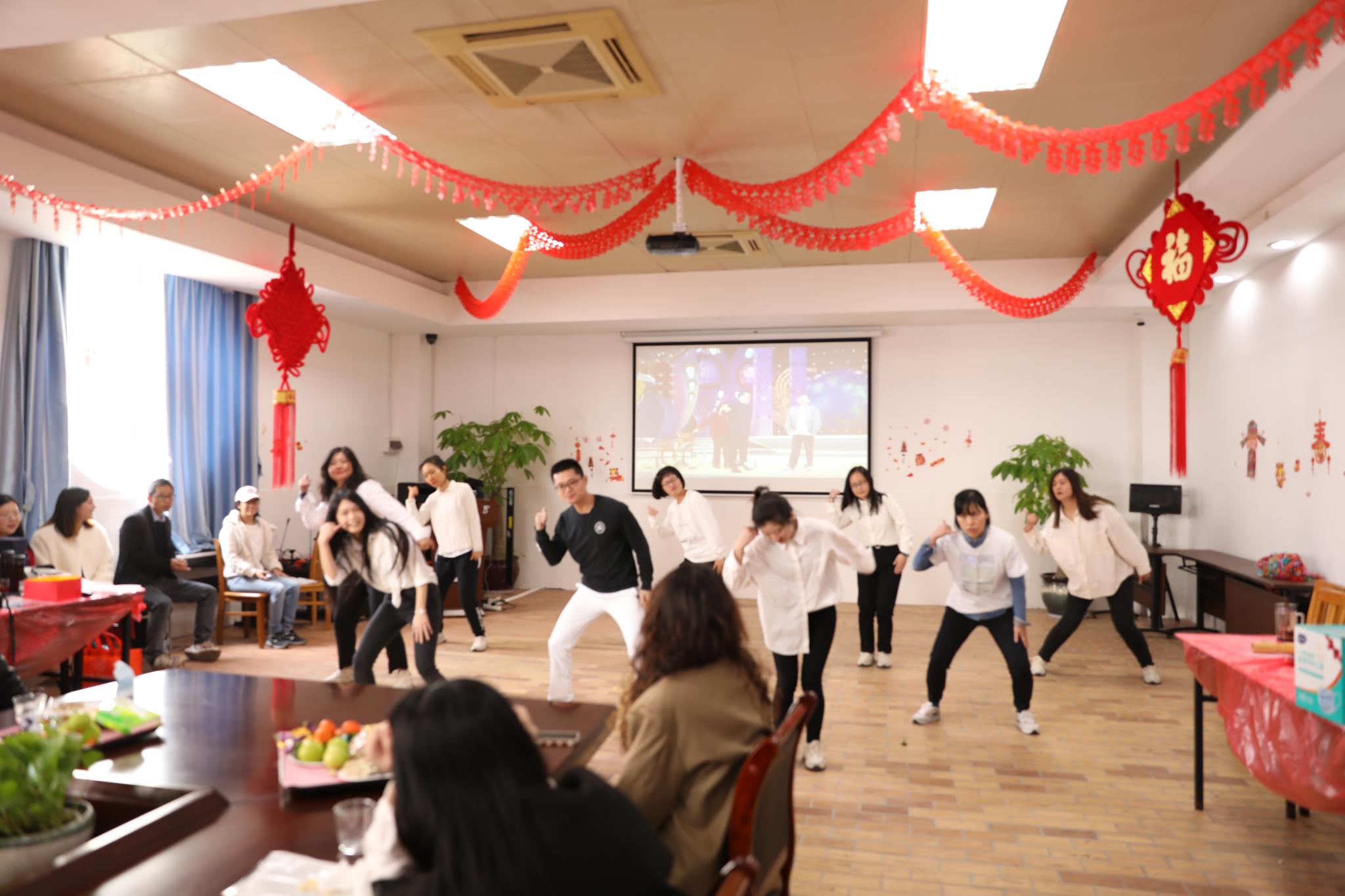 第一工会小组的老师们演绎的团体舞蹈压轴出场,热情洋溢,将团拜会的气氛推向了高潮。