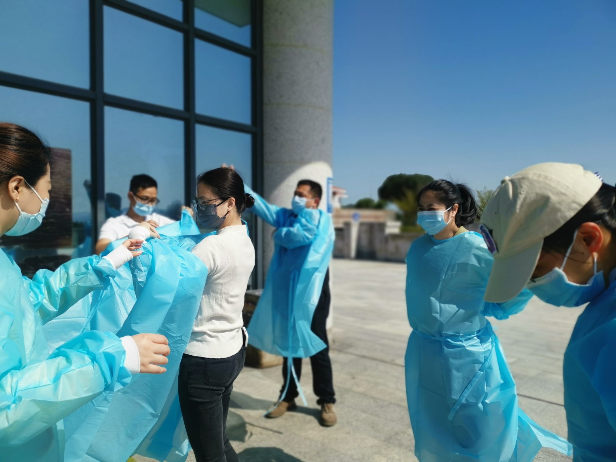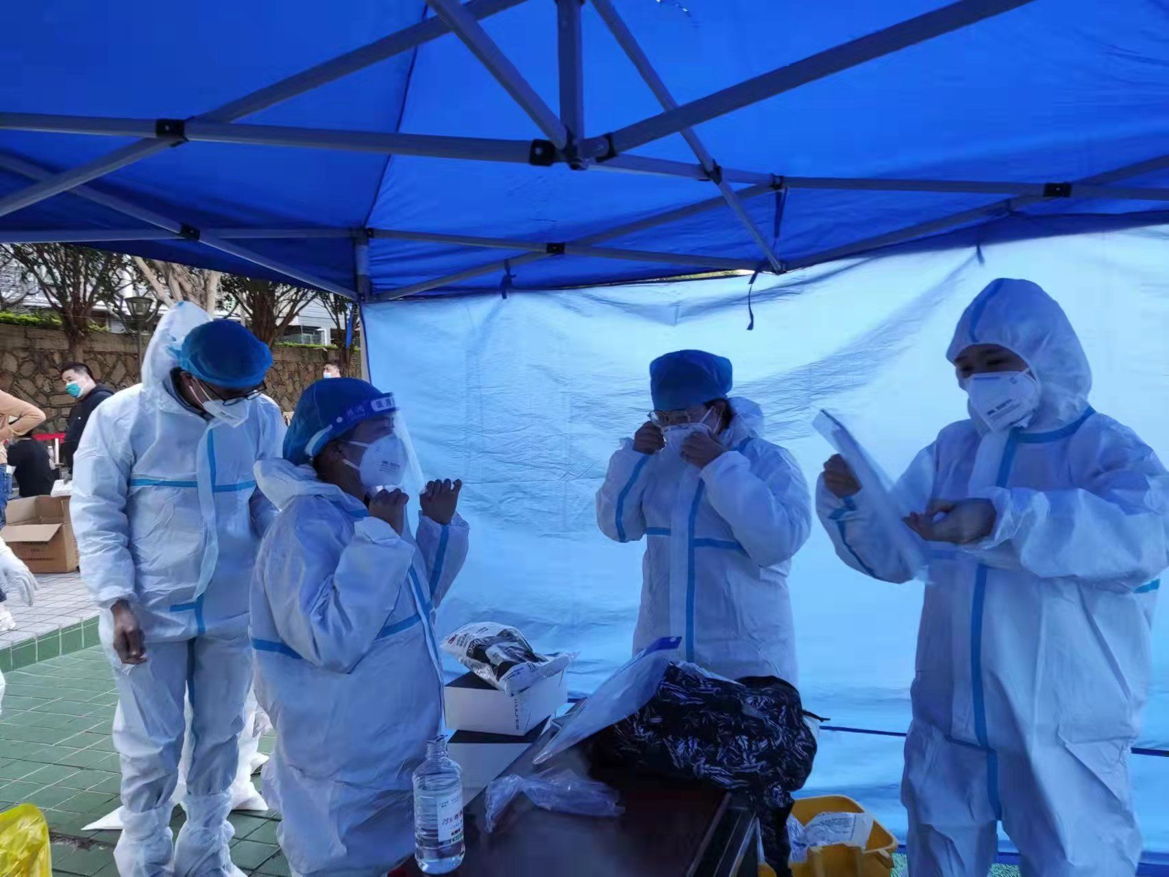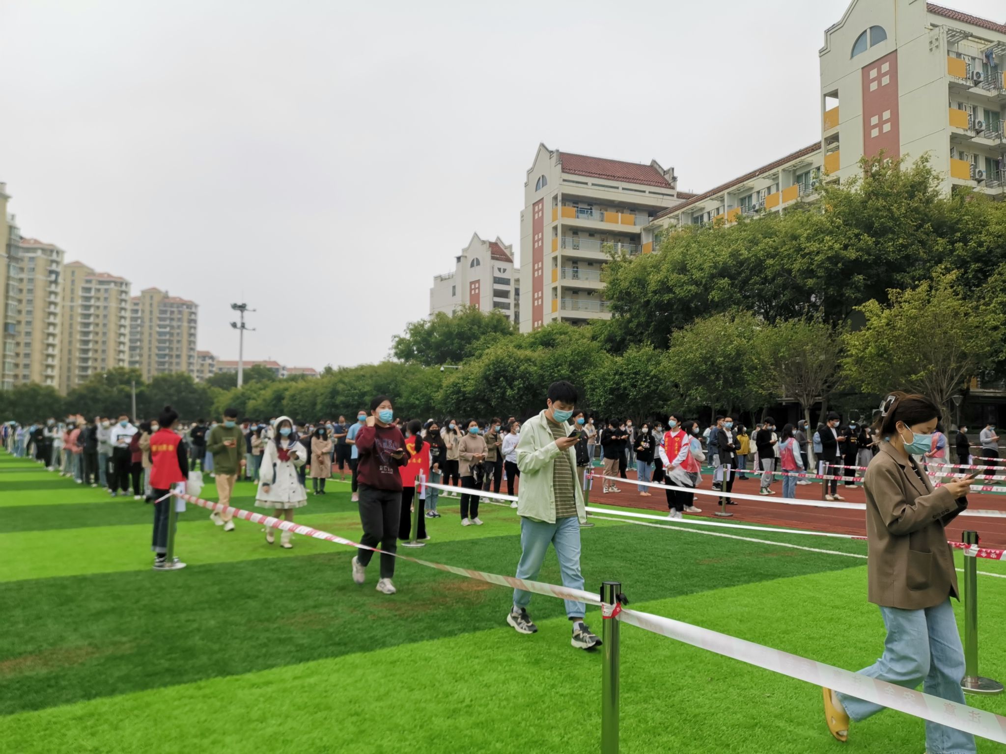 身上衣服湿了一遍又一遍,不要紧,手上被汗浸出了盐渍,不要紧,能够多测一个人、多帮助一个人,就是志愿者们共同的期望,师生们的一声理解、一句感谢,就是支撑志愿者们的坚定力量。