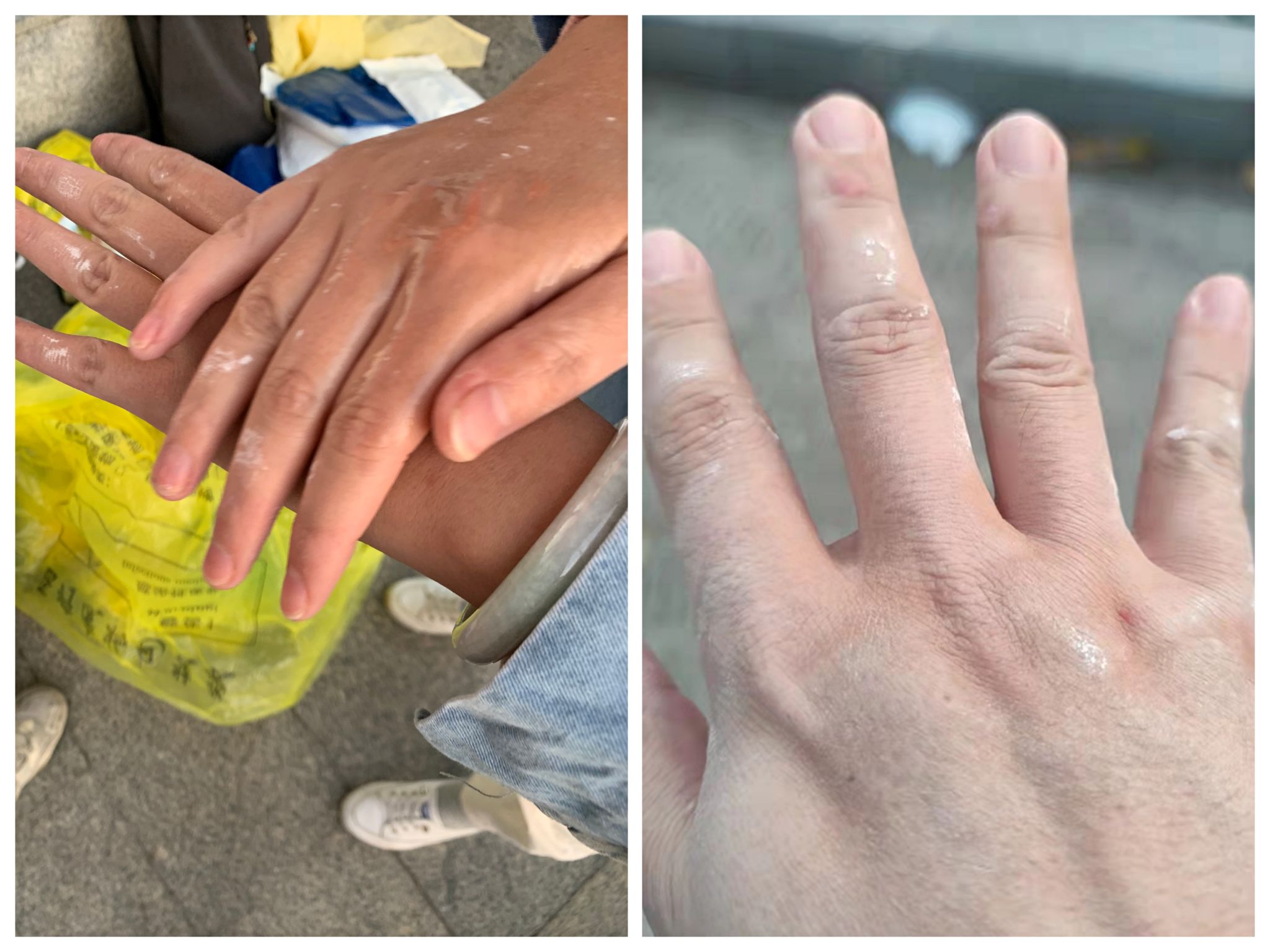 手套脱开后浸出的盐渍