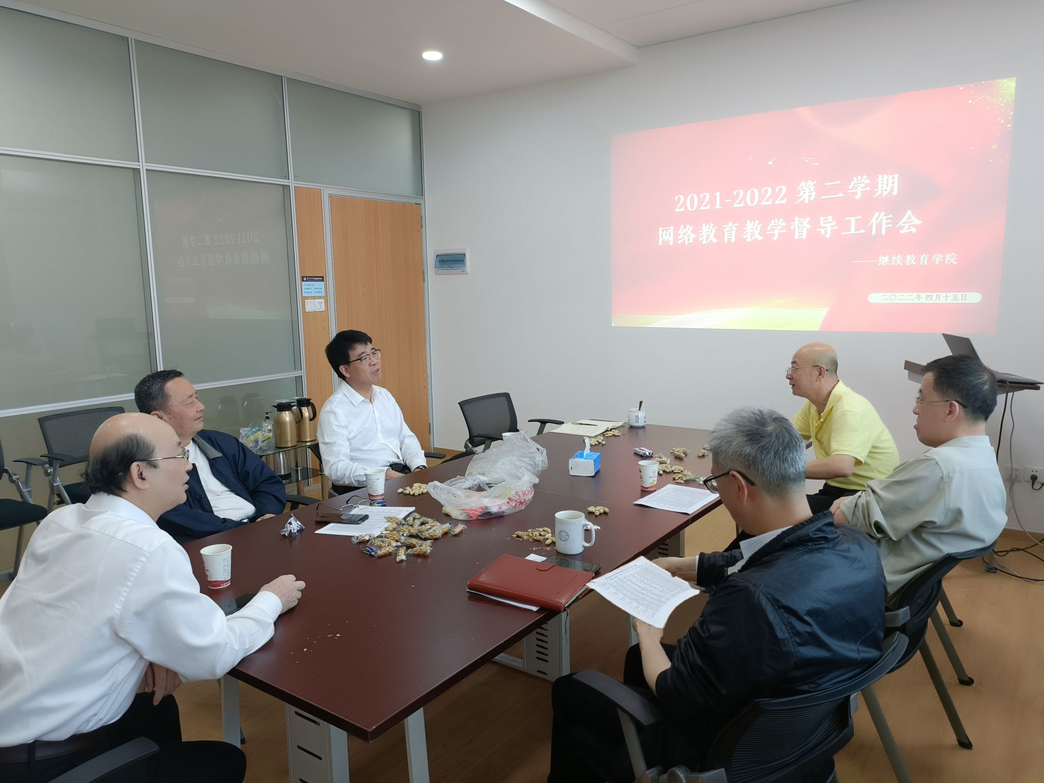 2022年4月15日下午,继续教育学院在322会议室召开网络学历教育教学督导工作会议,学院党总支书记邱旺土、院长朱孟楠、学历教育中心主任李金水、教务部负责人王娜,网络学历教育督导员王勤、孙怀清、卢荣忠等老师参加了会议。会议由李金水主持。