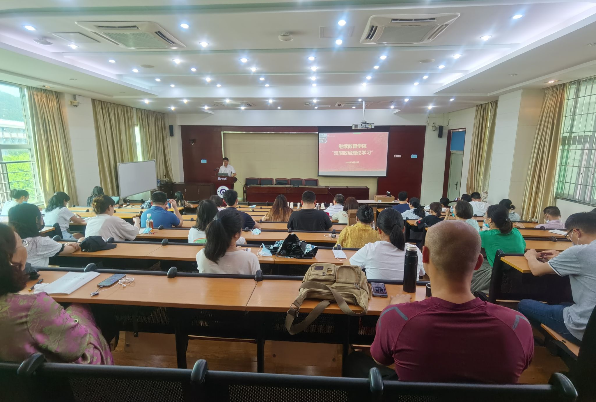 院长朱孟楠围绕“胸怀大局,做传承红色基因的引路人”“把握当下,做新时代事业发展的有心人”“放眼未来,做兴国强国报国的接班人”等三个方面分享学习体会。他指出,身为继续教育工作者,要牢记为党育人、为国育才的初心使命,成为精通知识的“经师”、好为涵养德行的“人师”,久久为功、润物无声深耕厚植思想政治教育。要加强勤学思辨的能力,在立足实际、坚定不移办好教育这个“国之大者”的基础上,不断推动知识创新、理论创新、方法创新,为以一流继续教育事业发展反哺学校“双一流”建设积极作为。他勉励学院全体青年教职工深入学习领会习近平总书记重要讲话精神,牢记党的教诲,立足岗位、敬业奉献,在继续教育育人征途中踔厉奋发、勇毅前行。