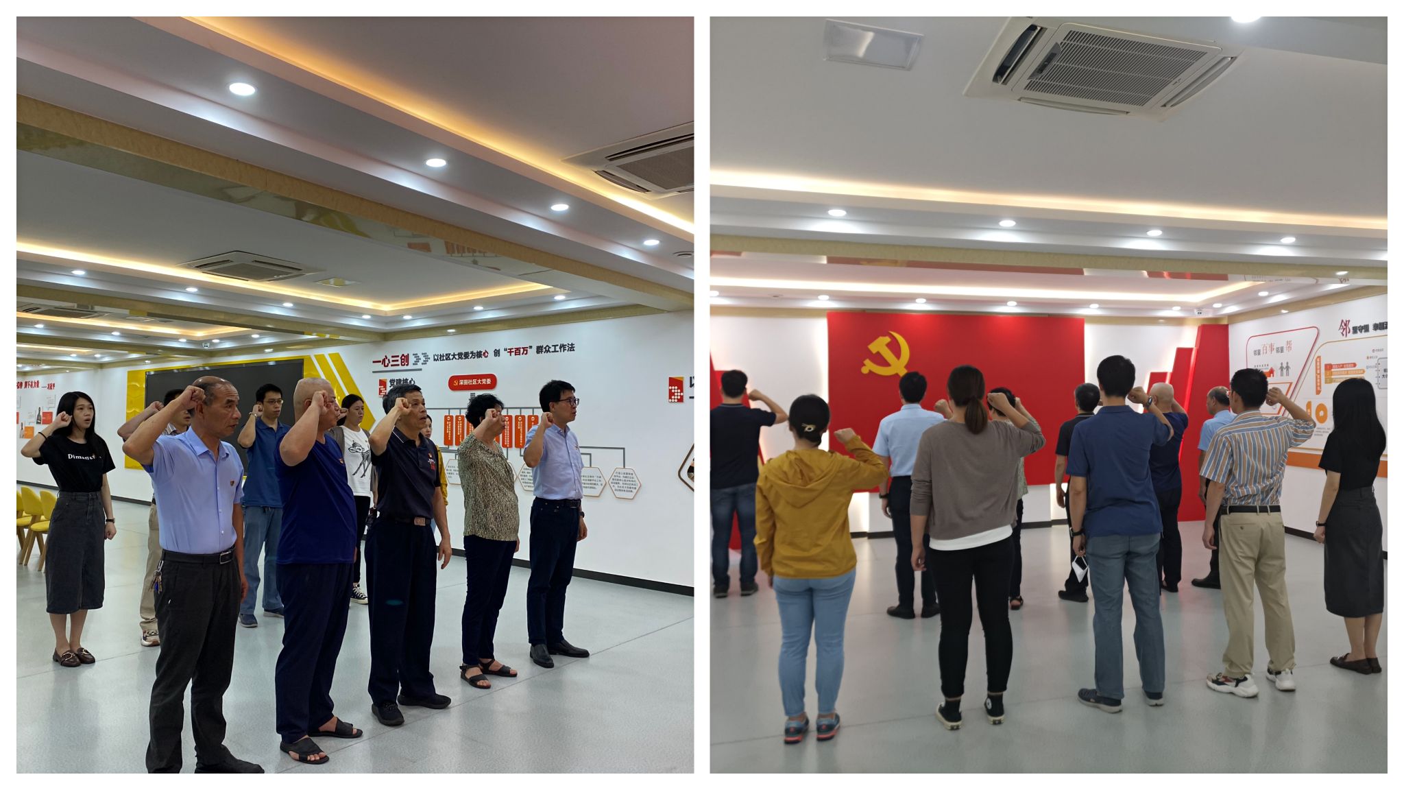 参观结束后,在职教职工第二党支部组织委员庄耿聪领誓,参加活动党员面向党旗,重温入党誓词。
