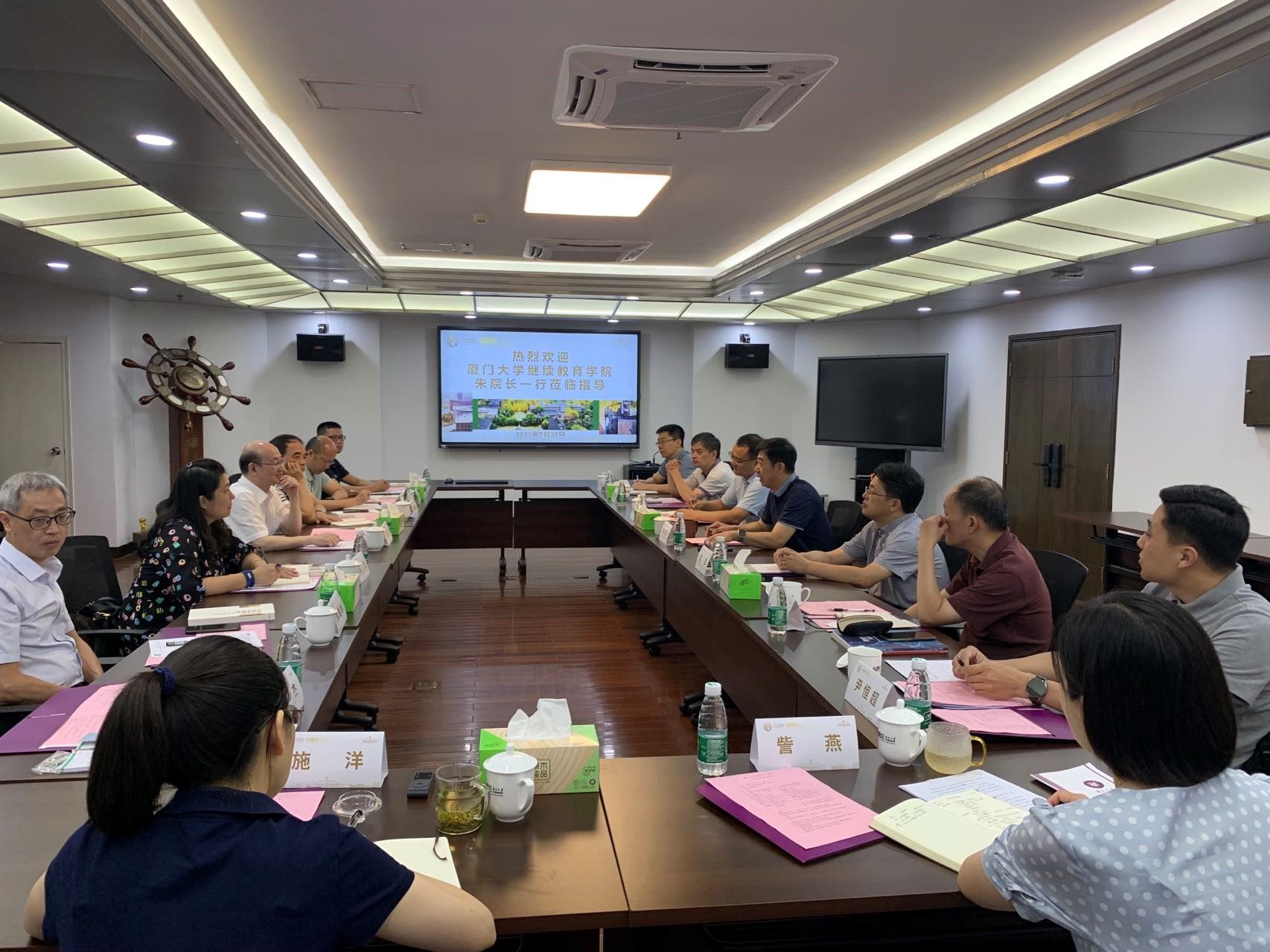 为进一步加强交流学习、推动学院顺利转型发展,2022年7月26-29日,院长朱孟楠教授率领学院办公室主任肖佳、学历教育中心主任李金水、非学历教育中心主任孙锦水、资源与技术中心主任施当波、事业推广部部长/继续教育研究与规划发展中心秘书李杰、技术部副部长杨建铸等七人前往南京大学终身教育学院、厦门大学校友会江苏暨南京分会等单位,就网络学历教育后续工作、非学历及在线业务发展模式与质量保障体系、终身教育智慧平台建设、激励制度及学院文化、校友工作等方面进行调研。