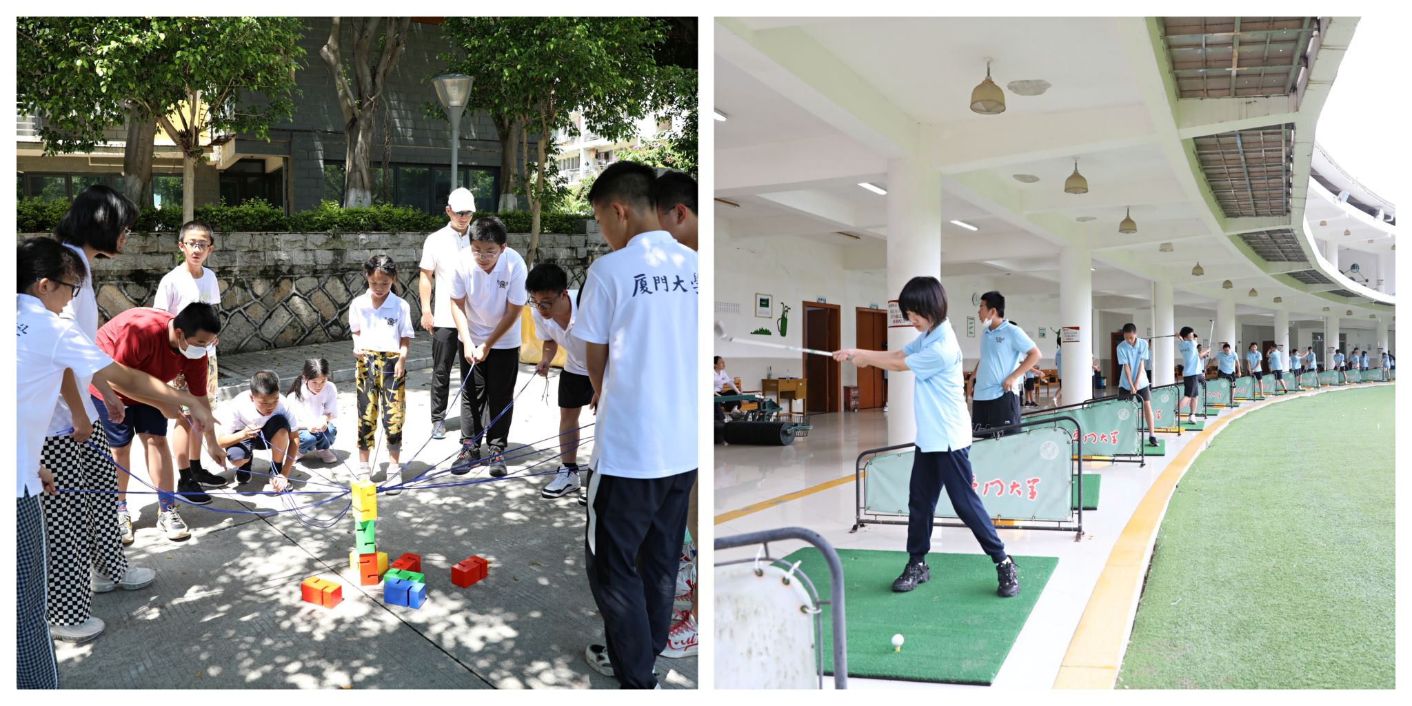 厦门大学体育教学部郑达雄老师带领同学们进行了“青春激扬、奋勇争先”的团建活动,提高了同学们的团队协作能力。厦大独特的豪华高尔夫球课程,让同学们不仅掌握了高尔夫球的基本运动技能,还拓宽了视野。