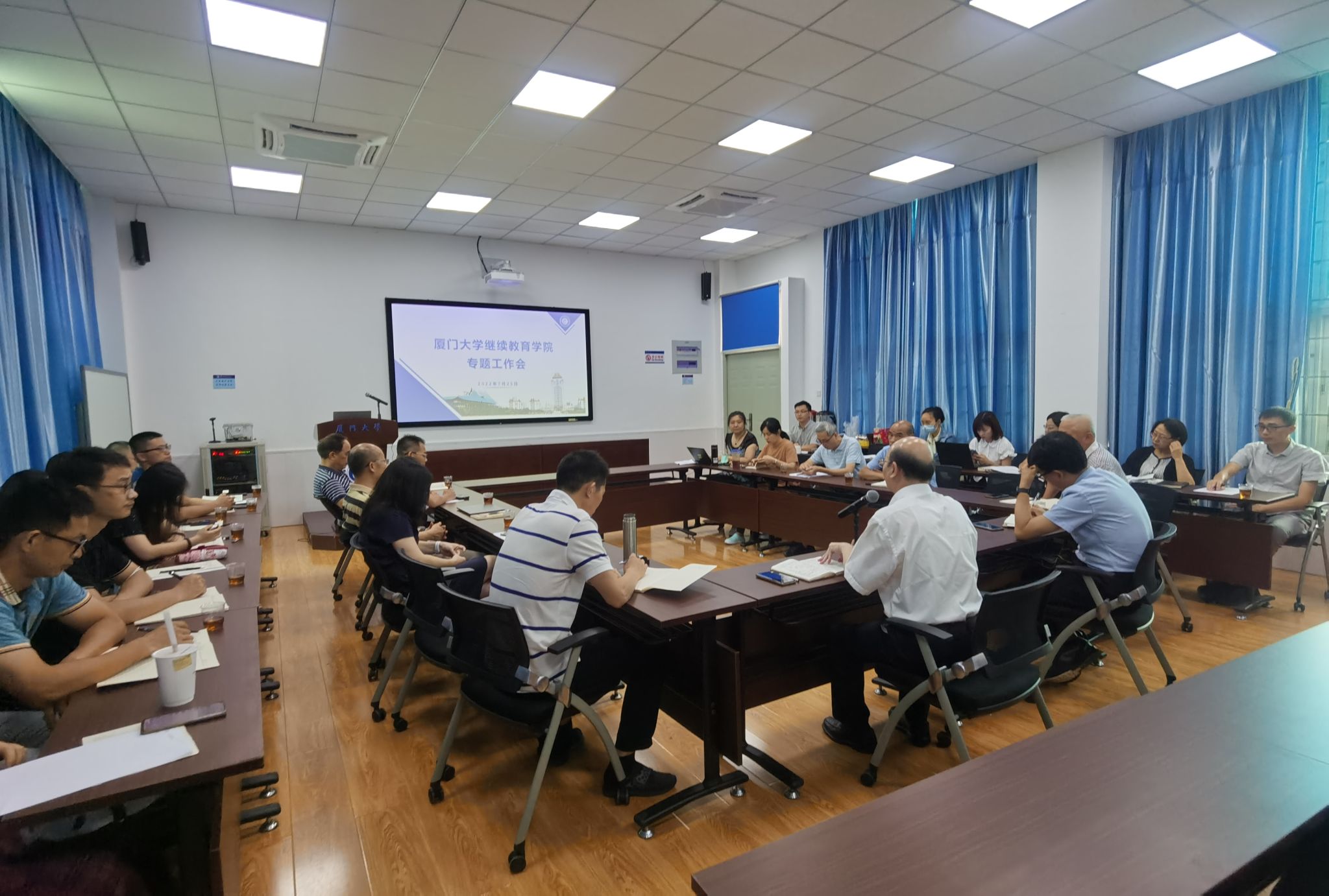 7月25日,继续教育学院召开专题工作会,会议围绕2022年上半年工作成就、工作难题与短板、2022年下半年工作计划等内容展开讨论和研究。学院党政领导班子成员、各部门副部长以上人员参加了会议。会议由院长朱孟楠主持。