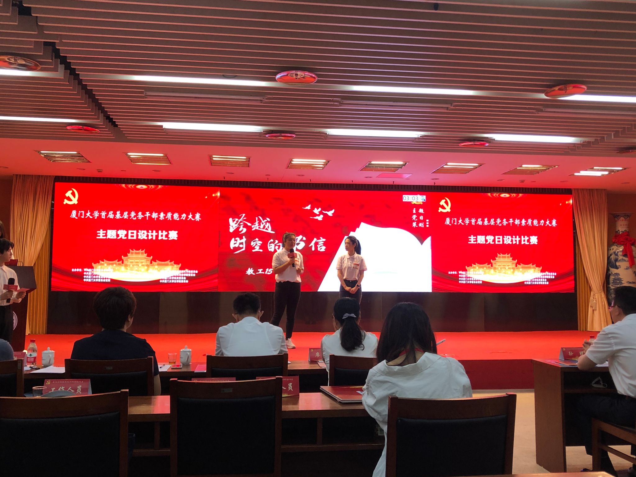 我院代表队结合2022年1月是立足党的新百年和学校新百年新起点,是全国上下深入开展党史学习教育总结的重要时期等背景,充分运用学院在课件录制方面的资源技术优势,认真谋划、细致周密设计了“跨越时空的书信”主题党日活动,通过“以笔寄情”“以声抒情”“以影传情”三个环节,教育引导党员铭记感恩过往先辈先烈为党和人民伟大事业、为厦大教育的欣欣向荣奋斗拼搏的动人事迹,珍惜如今来之不易幸福生活,坚定奋进未来信念,提振以史为鉴、开创未来的精气神。现场答辩、表态发言发挥稳定,表现良好。