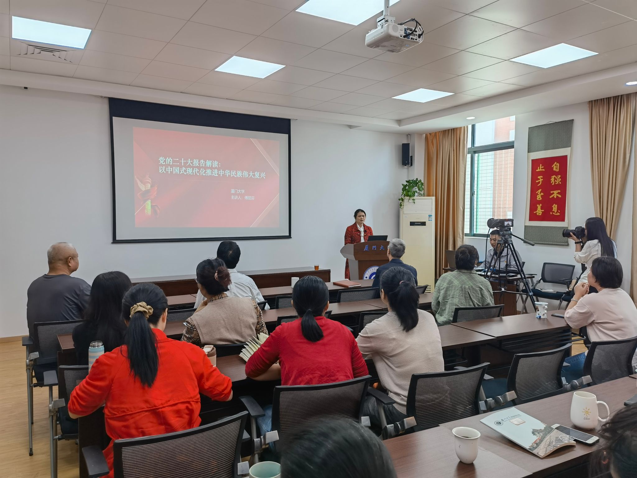 傅丽芬副教授简要介绍党的二十大报告的基本内容,分析了我国不同阶段对“现代化”发展内涵的变化,并从经济建设、政治建设、文化建设、生态文明建设等方面详细解读党的二十大报告中提出的“中国式现代化”的本质要求和全面部署。讲座内容丰富、分析透彻、数据翔实,有助于全院师生进一步深入领会党的二十大精神,对全院师生更好地用习近平新时代中国特色社会主义思想武装头脑、指导实践、推动工作具有重要意义。