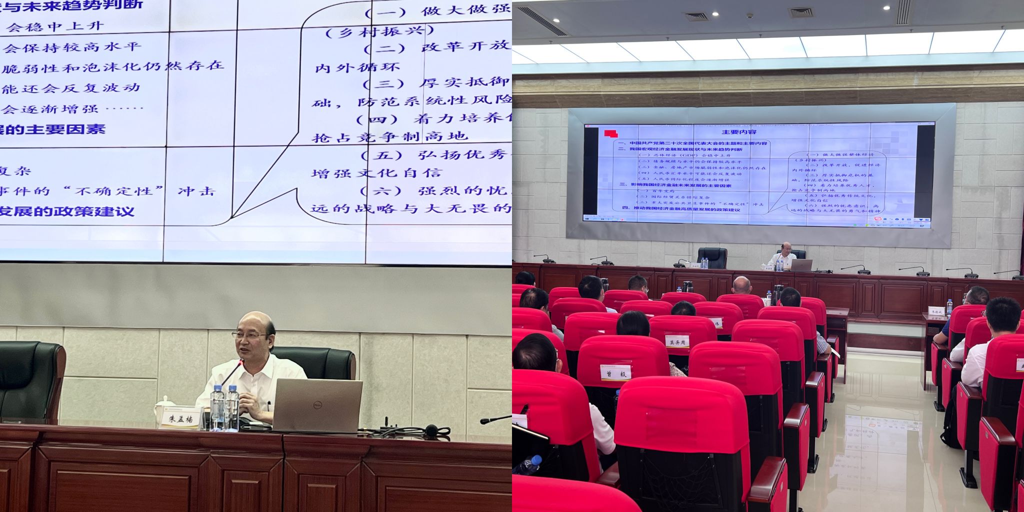 走访调研中,着重听取了广西对人才方面的迫切需求以及广西在面向东盟、衔接“一带一路”的地理优势和独特民族文化资源,结合厦大的学科建设和发展、人才培养模式及我院各类业务的开展情况和转型发展规划等,在区域性经济金融研究、干部队伍人才培养、数字经济金融专业人才培训等继续教育方面的合作,与各单位进行了深入的交流。通过多方的了解和实地察看,提出了许多建设性建议,拓展了校地合作的广阔空间。调研期间,朱孟楠院长结合党的二十大精神,专门为广西农村投资集团的中高层管理干部讲授了题为《党的二十大后宏观经济金融发展态势与未来政策选择》专题,回顾了党的十八大以来,我国相继推出的系列重大改革及取得的显著成效,对我国宏观经济金融发展现状、特点做了系统的分析,对未来经济金融发展趋势做出了判断,并结合广西壮族自治区和农投集团的发展现状,提出了推动我国经济金融高质量发展的政策建议。