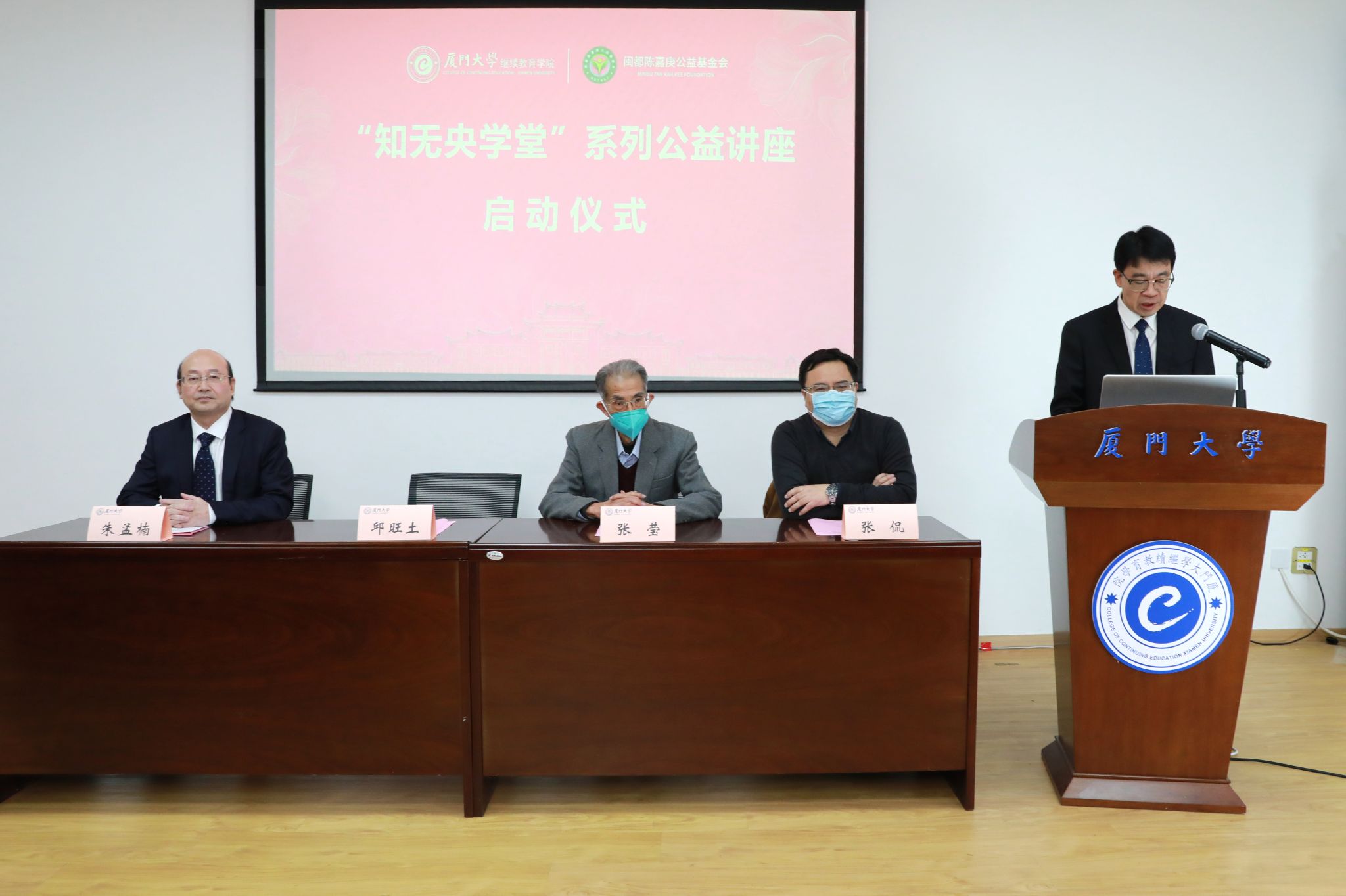 为进一步践行终身学习理念,构建灵活开放的终身教育体系,推进学习型社会建设,12月24日晚上,我院顺利举办“知无央学堂”系列公益讲座启动仪式暨第一期讲座线上直播,闽都陈嘉庚公益基金会副秘书长张莹老师、厦门大学历史与文化遗产学院院长张侃教授、厦门大学继续教育学院院长朱孟楠教授、闽都陈嘉庚公益基金会和学院有关老师参加仪式和讲座。仪式由学院党总支书记邱旺土主持。
