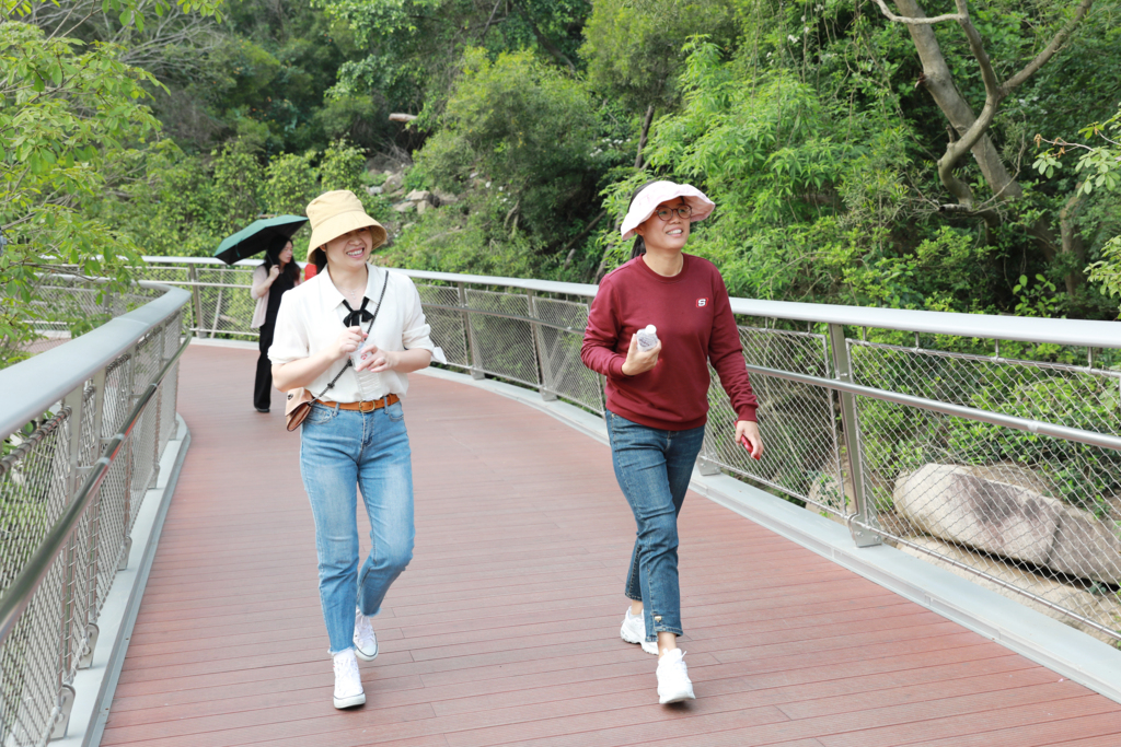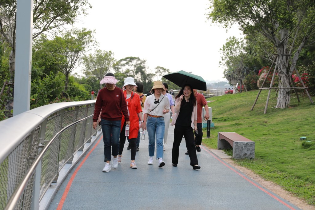 一路上,大家迈开脚步奔向自然,拥抱山野,细嗅草木,山林健步,收获野趣,在欢声笑语中放空心情和放松交谈,感受“城在海上、海在城中、山海相连、城景相依”的壮观画卷,留下了许多美好的记忆。
