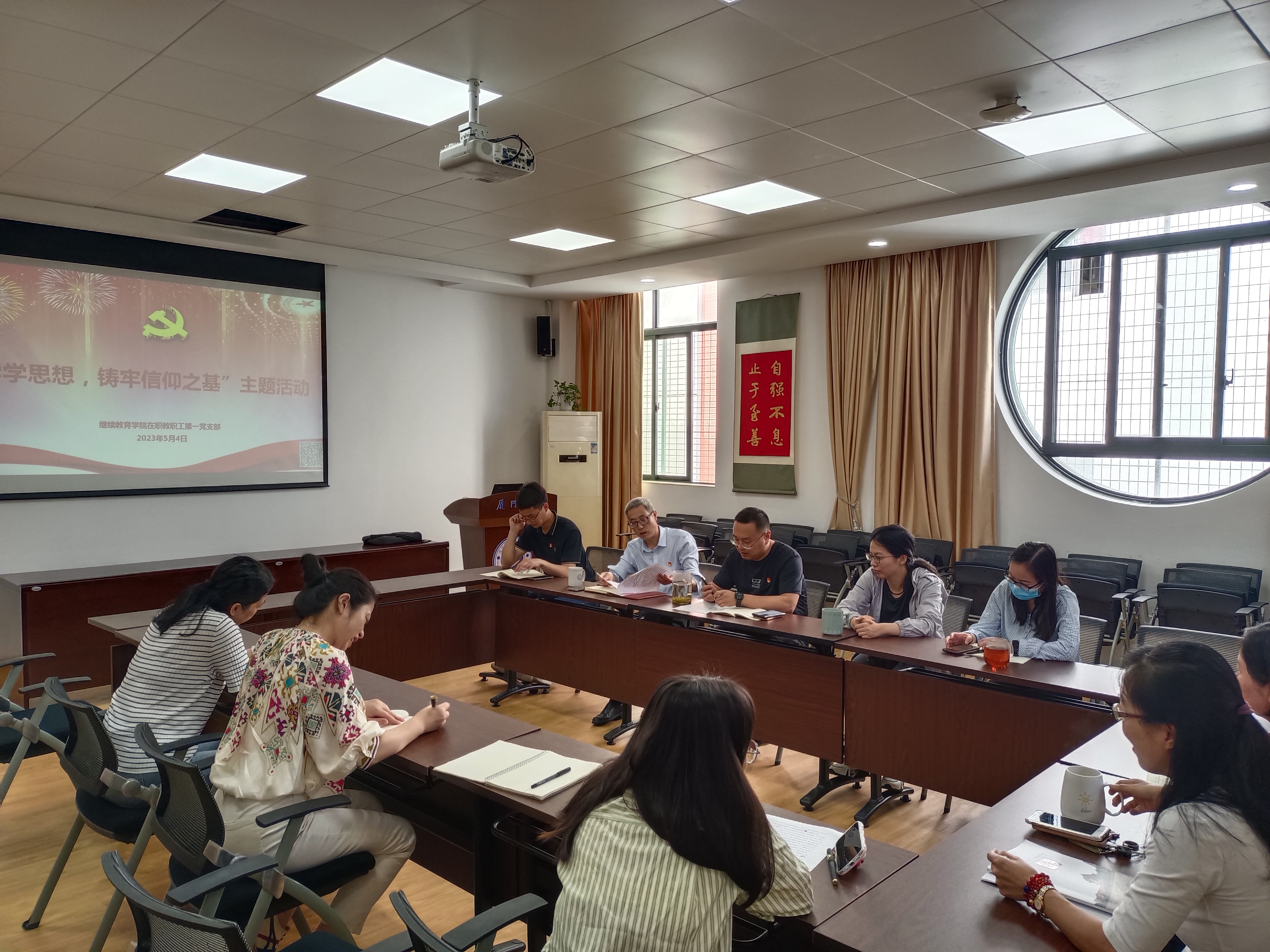 为深入学习贯彻习近平新时代中国特色社会主义思想,引导支部党员筑牢信仰之基、补足精神之钙、把稳思想之舵,2023年5月4日-7日,在职教职工第一党支部紧紧围绕“学思想、强党性、重实践、建新功”的总要求,通过集中学习、现场教学、交流研讨等形式开展“学思想,铸牢信仰之基”主题系列活动。