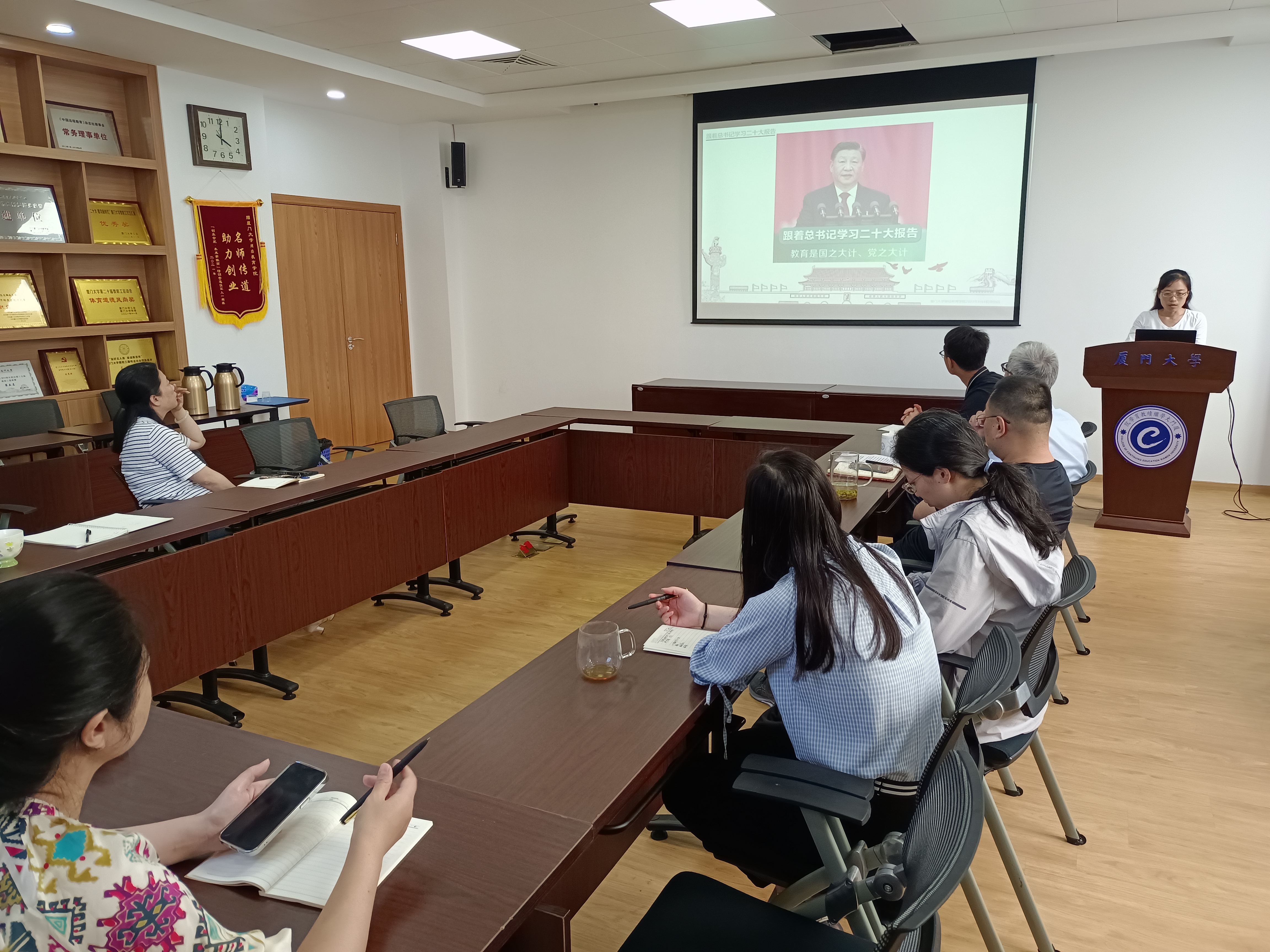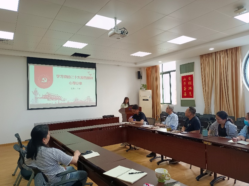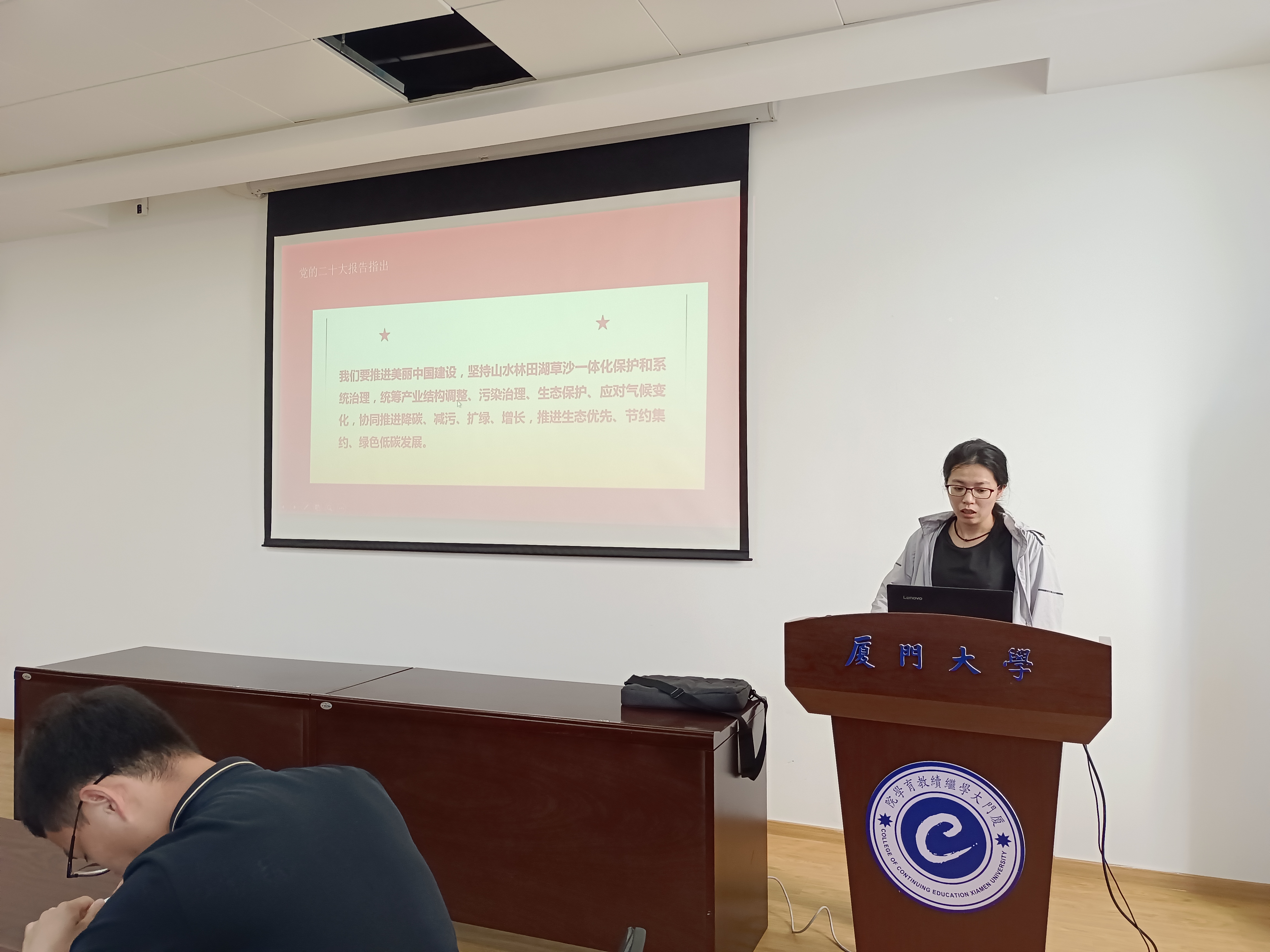 支部按照“读原著、学原文、悟原理”的要求,5月4日,通过支委领读及观看专家解读视频等形式组织全体党员认真学习党的二十大报告和党章。会上,党员发展对象冯婕以及支部党员杨丽华、蔡丽霞结合自身工作实际,分别以《学习党的二十大精神 争做新时代好青年》《不负青山 绿水长流》《跟着习近平总书记学习党的二十大报告——教育是国之大计、党之大计》为题分享了各自的学习体会。