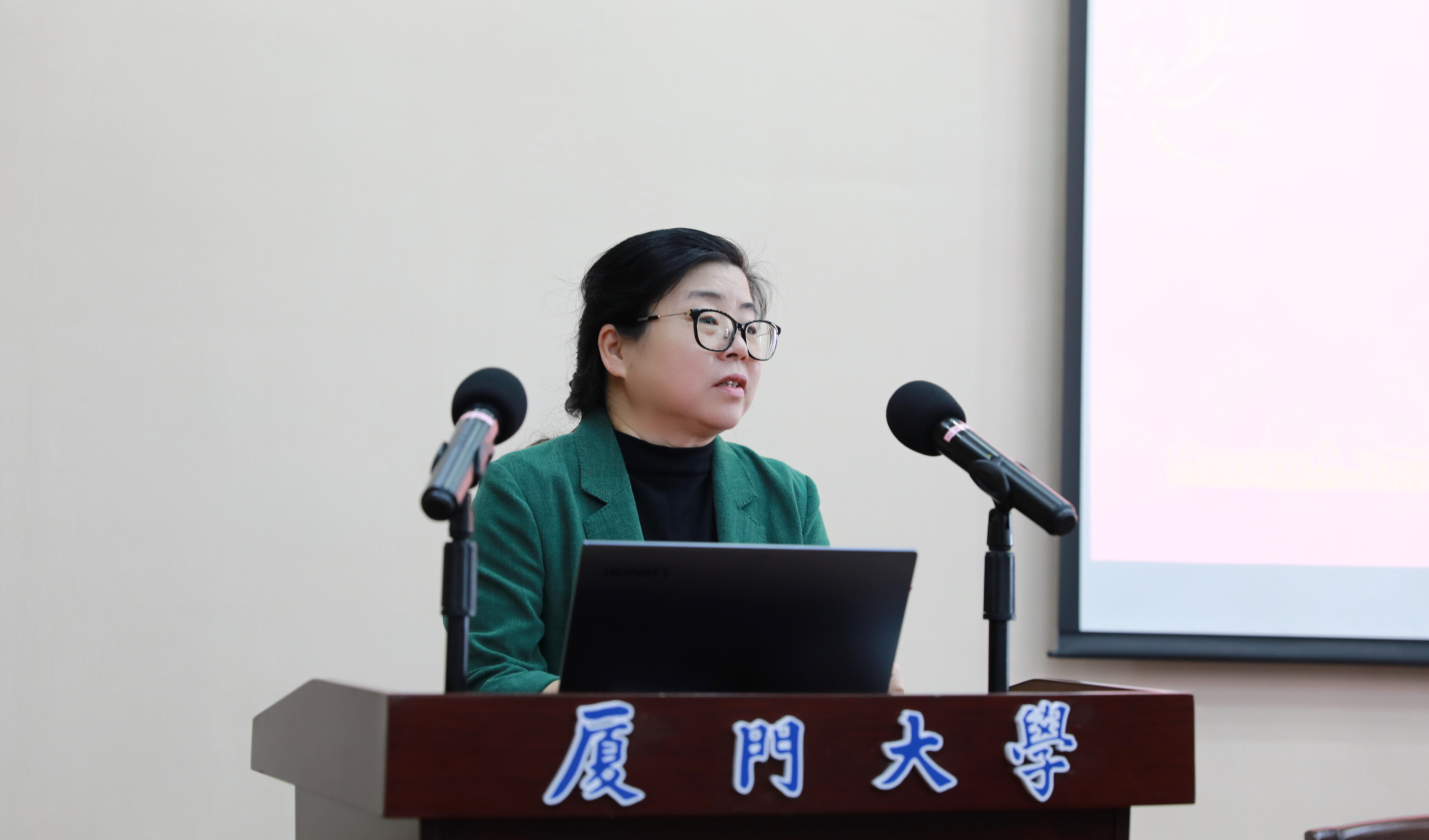 吴国瑛书记作总结讲话,她先代表学院向关心、支持、帮助学院建设发展的闽都陈嘉庚公益基金会表示感谢,向获奖学生表示祝贺,并指出设立奖学金、优秀学生、优秀学生干部奖项的目的是为了鼓励先进,奖优促学。同时吴书记提出了三点期望:一是要勤于学习,终身学习;二是要坚定信心、持之以恒;三是要胸怀理想、志存高远。希望全体学子能够秉承厦门大学“自强不息,止于至善”的校训,踏实努力学习,提升综合素养,胸怀爱国理想和梦想,成为具有终身学习精神和能力的人,成为富有“家国情怀”堪当民族复兴大任的时代新人。