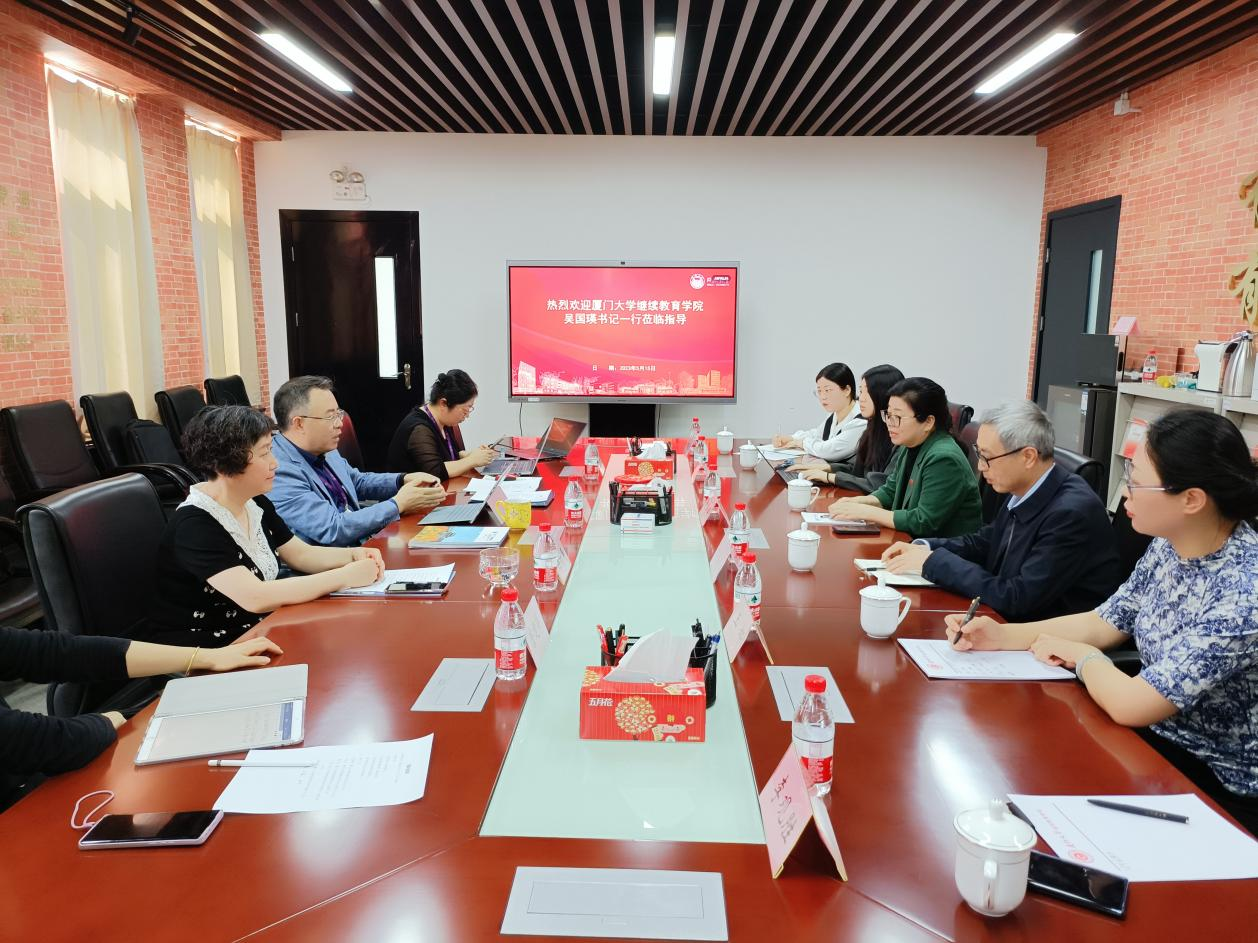 5月15日下午,吴国瑛一行参访了华东师范大学开放继续教育学院。在座谈会中,双方就继续教育目前面临的发展形势、未来发展路径展开热烈讨论,并围绕改革转型过程中如何妥善做好机构调整、制度完善、人员安排等交流经验。双方均表示,两校之间有着深厚的历史渊源,希望双方未来能够进一步强化沟通交流、探索继续教育合作可能,再续两校深情厚谊。