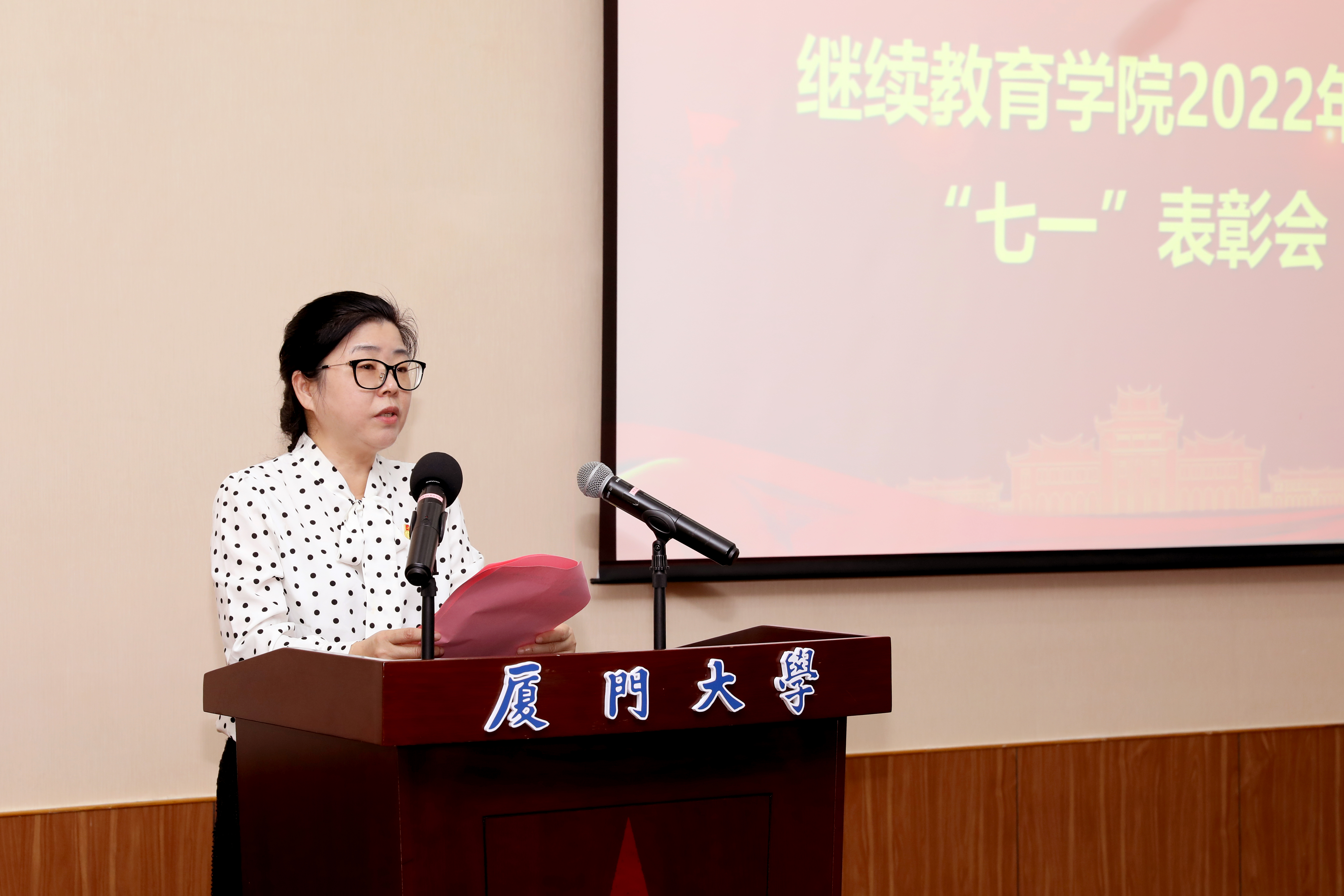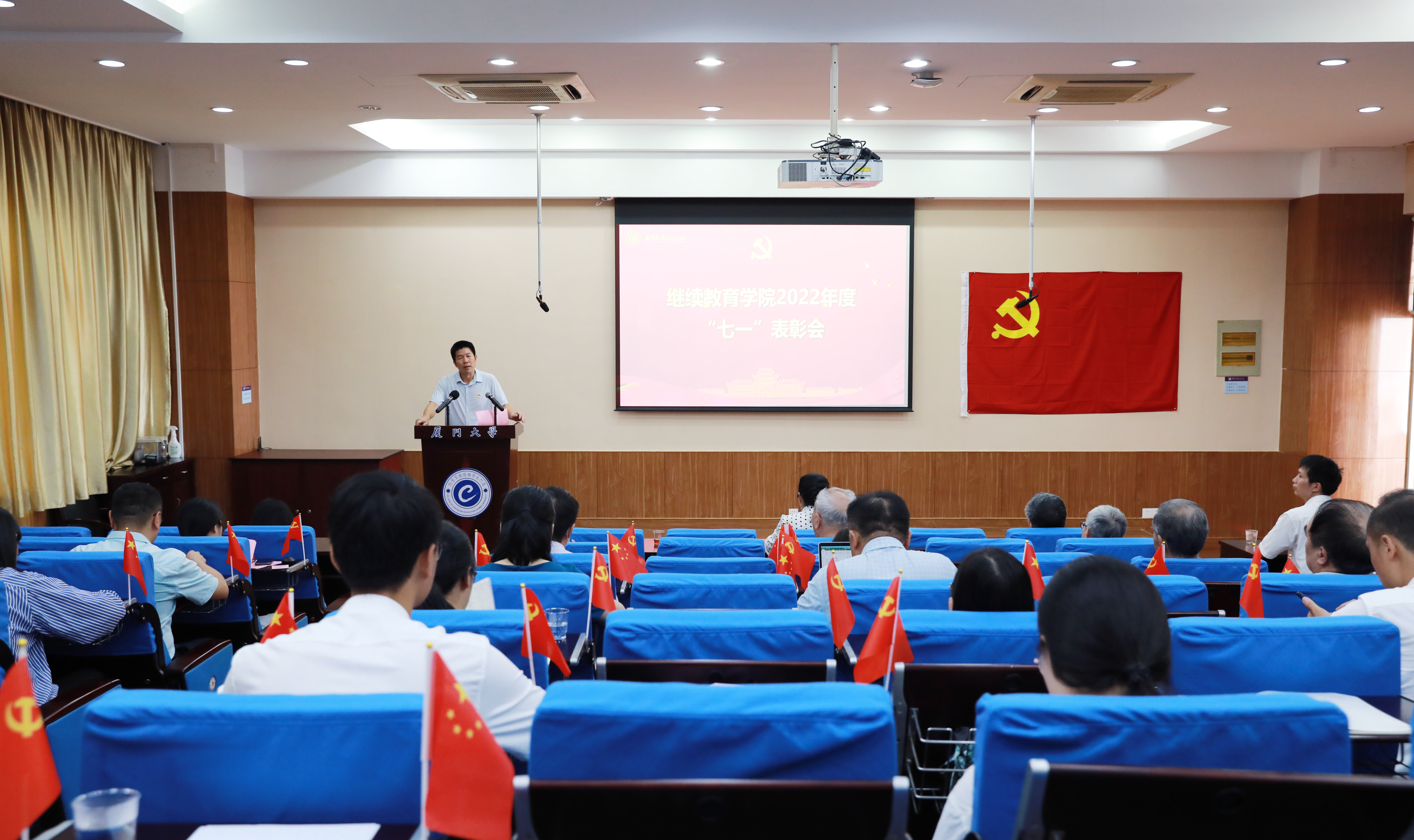 为热烈庆祝中国共产党成立102周年,激励全院党员继承和发扬伟大建党精神,唱响共产党好、社会主义好、改革开放好、伟大祖国好、各族人民好的时代主旋律,6月30日上午,继续教育学院在厦大学生公寓教学楼404报告厅召开2022年度“七一”表彰会。学院全体党员参加了会议,校基层党建工作联络员、校主题教育第五巡回指导组组长郑建华列席指导。学院党总支副书记、院长许和山主持会议。