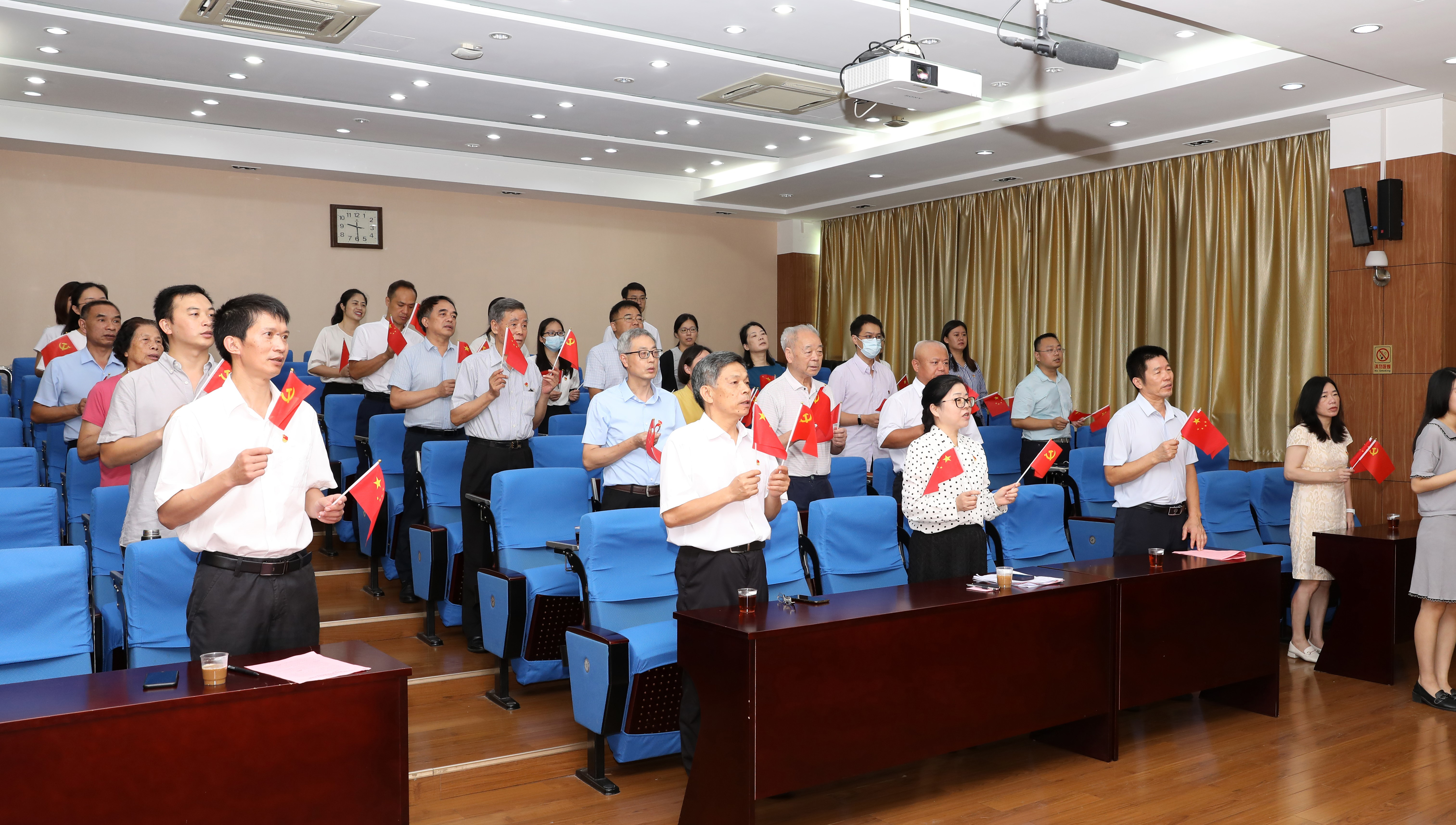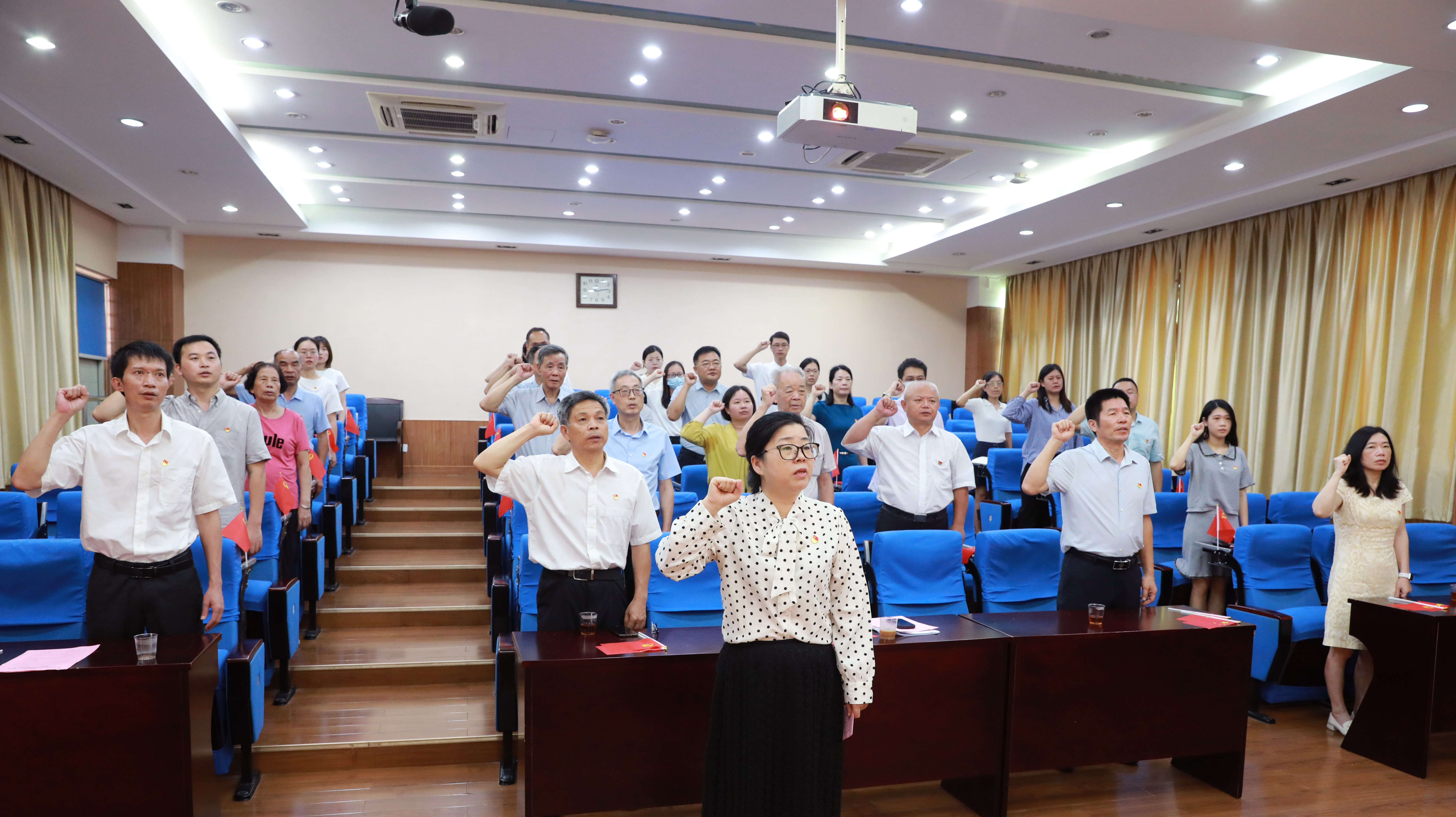 表彰过后,吴国瑛领誓,带领全体党员重温入党誓词,大家在铿锵有力的誓言声中重温入党初心,强化使命担当。
