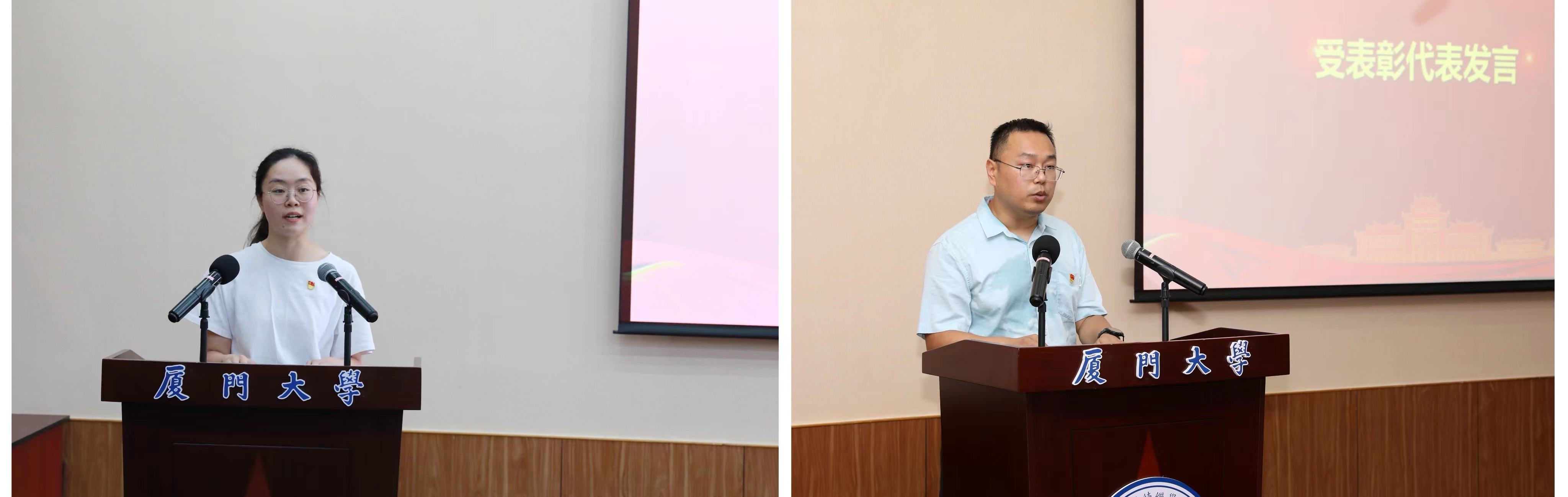 优秀共产党员代表宁灿、优秀党务工作者代表李怡雄依次上台发表感言。