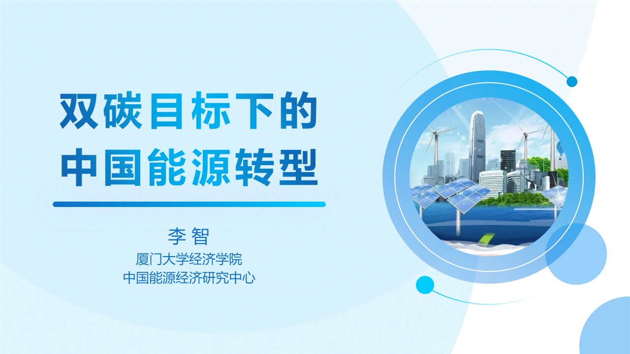 2023年8月19日晚19:30,“知无央学堂”系列公益讲座第八期诚邀厦门大学经济学院李智副教授,作题为《双碳目标下的中国能源转型》的讲座。