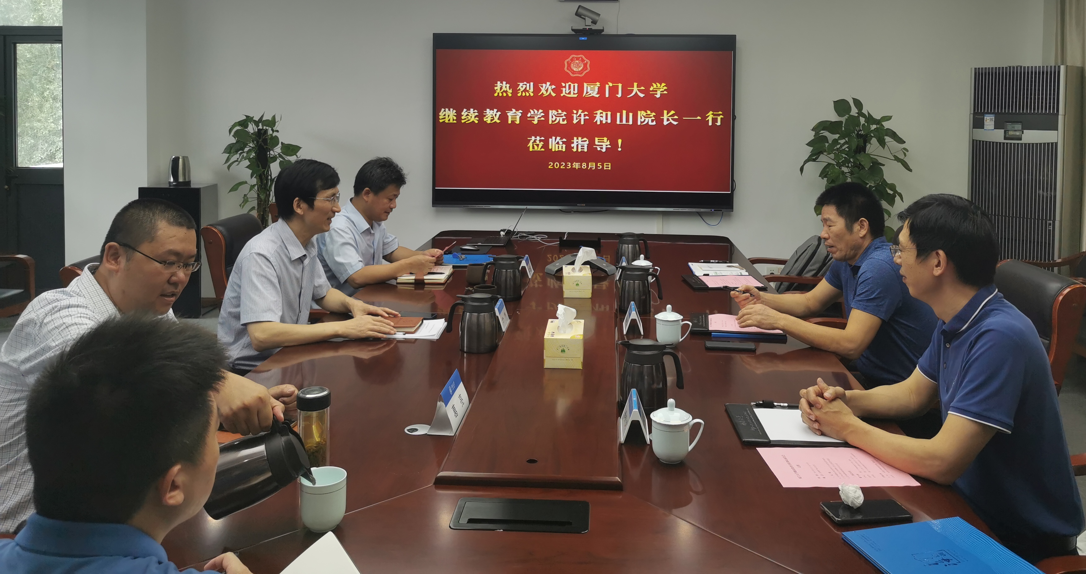 8月5日下午,许和山院长一行来到江苏省淮安市,与淮安市委组织部、淮安市纪委、淮安市市场监督管理局等单位校友交流调研,双方就淮安市公务员系统及企业培训需求等方面进行了深入的讨论,希望能有更多的淮安市培训班走进厦大,进一步提升干部的政治业务素养和履职尽责的能力,为母校与淮安市的深入交流合作搭建桥梁。