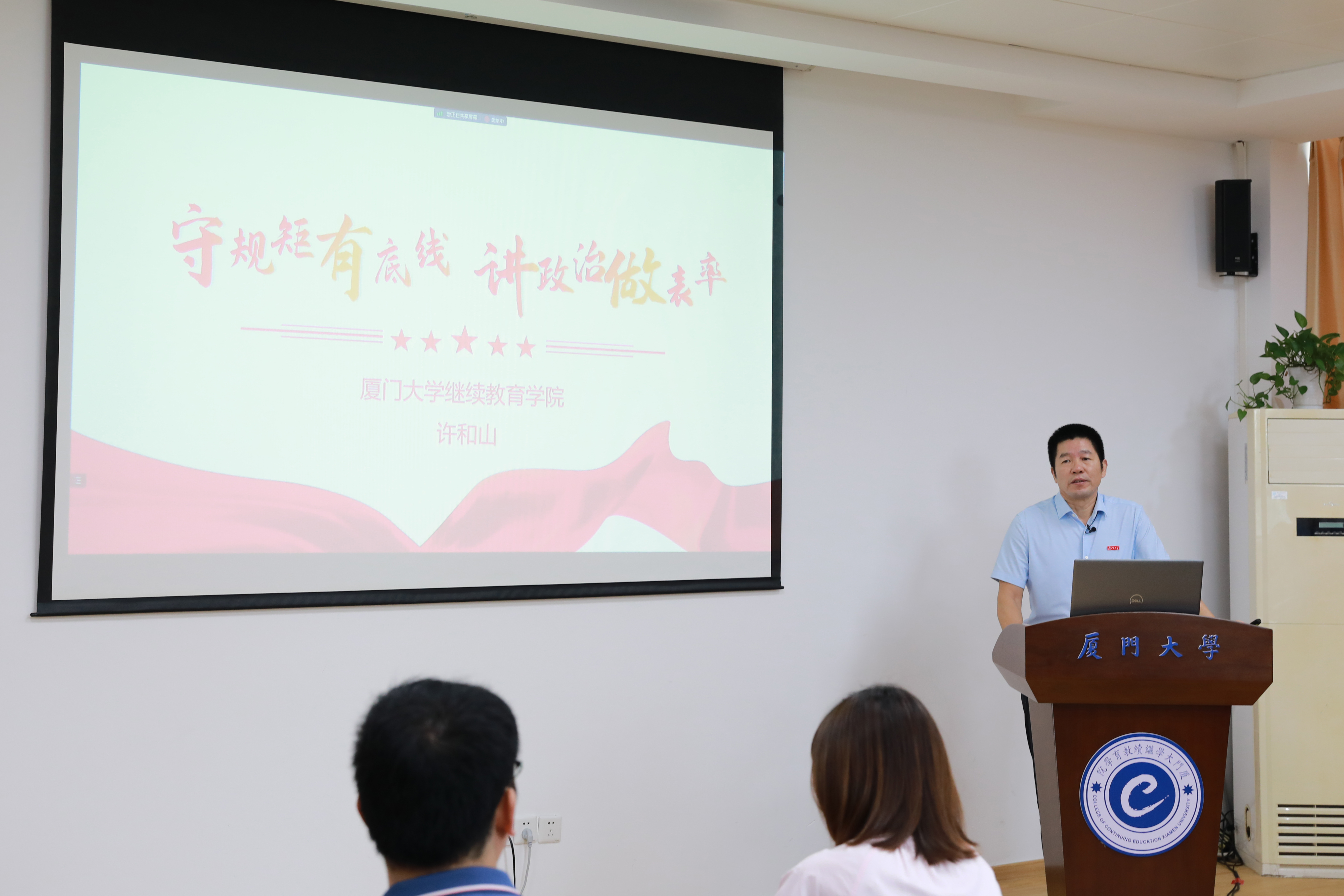 为深入学习贯彻习近平新时代中国特色社会主义思想,教育引导广大干部涵养忠诚干净担当的政治品格,10月15日,我院院长许和山受邀以线上线下相结合形式,为隆德县沙塘镇党政班子成员,村党支部书记、副书记,张树村党支部党员代表、继续教育学院在职教职工第二党支部党员讲授《守规矩有底线 讲政治作表率》主题党课。