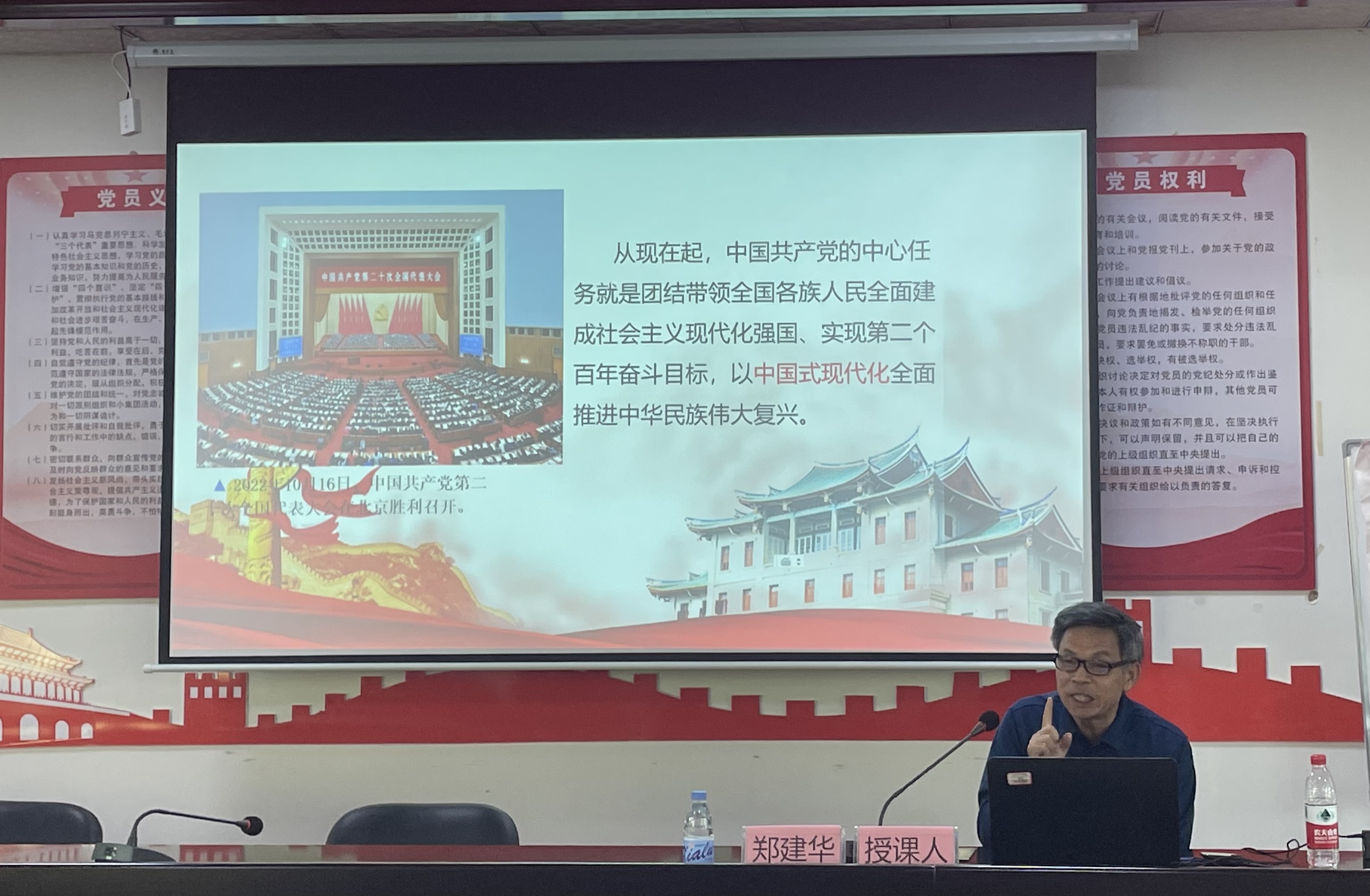 郑建华以“从历史发展看中国式现代化”为题,以中国式现代化的五个特征为线索,系统阐述了中国式现代化如何推动经济、政治、文化、社会、生态文明协调发展。整场讲座引经据典,战略高度、思想厚度、理论深度兼具,收获现场党员普遍好评。
