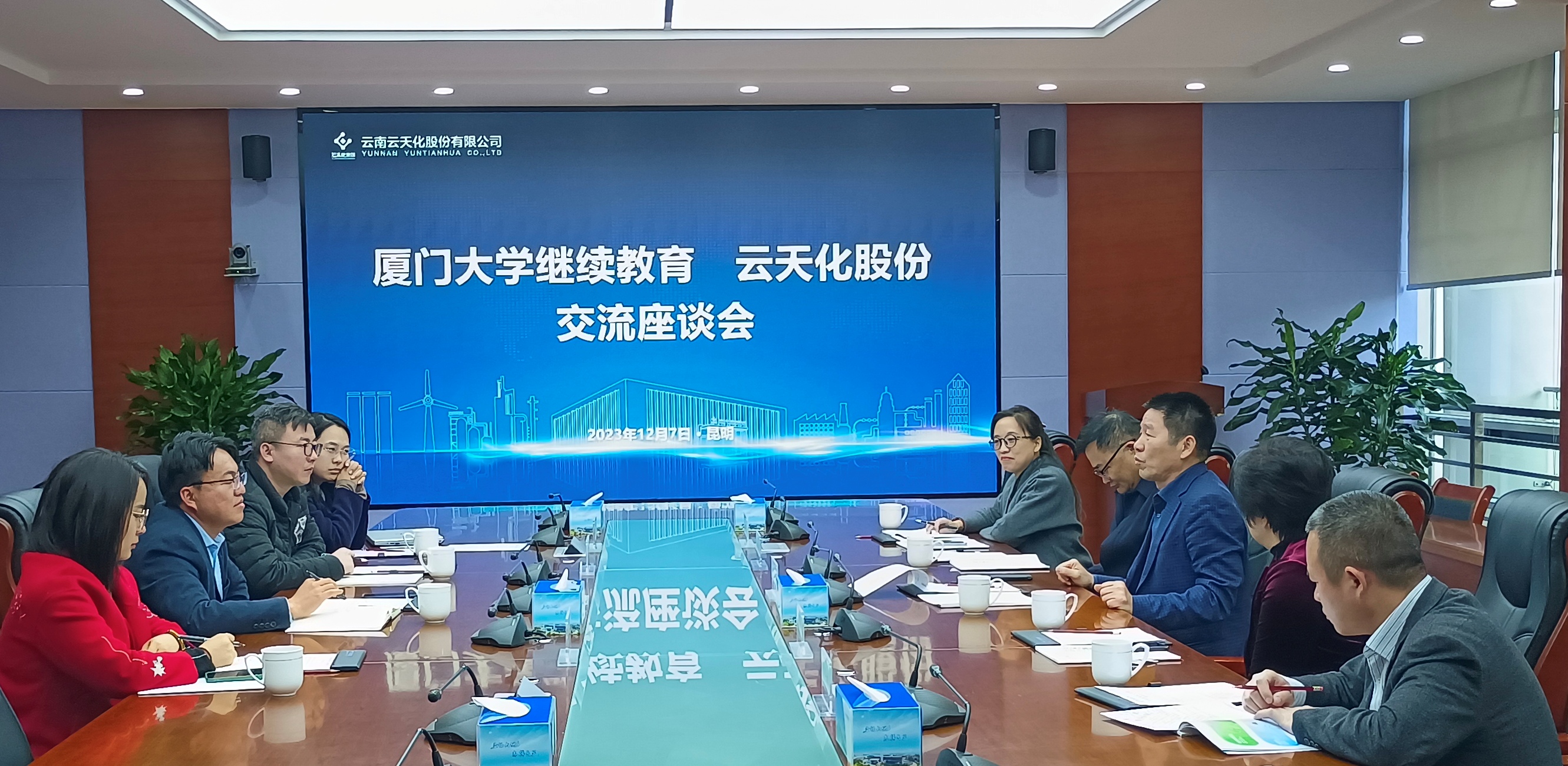 12月7日上午,许和山院长一行到云南云天化股份公司调研交流,与李发光党委副书记、李林部长助理及人力资源部相关部门管理骨干座谈交流。双方就国企党建引领业务发展、人才引进及培训培养、各自优势等展开热烈讨论,并就一站式定制培训及人才推荐达成合作意向。