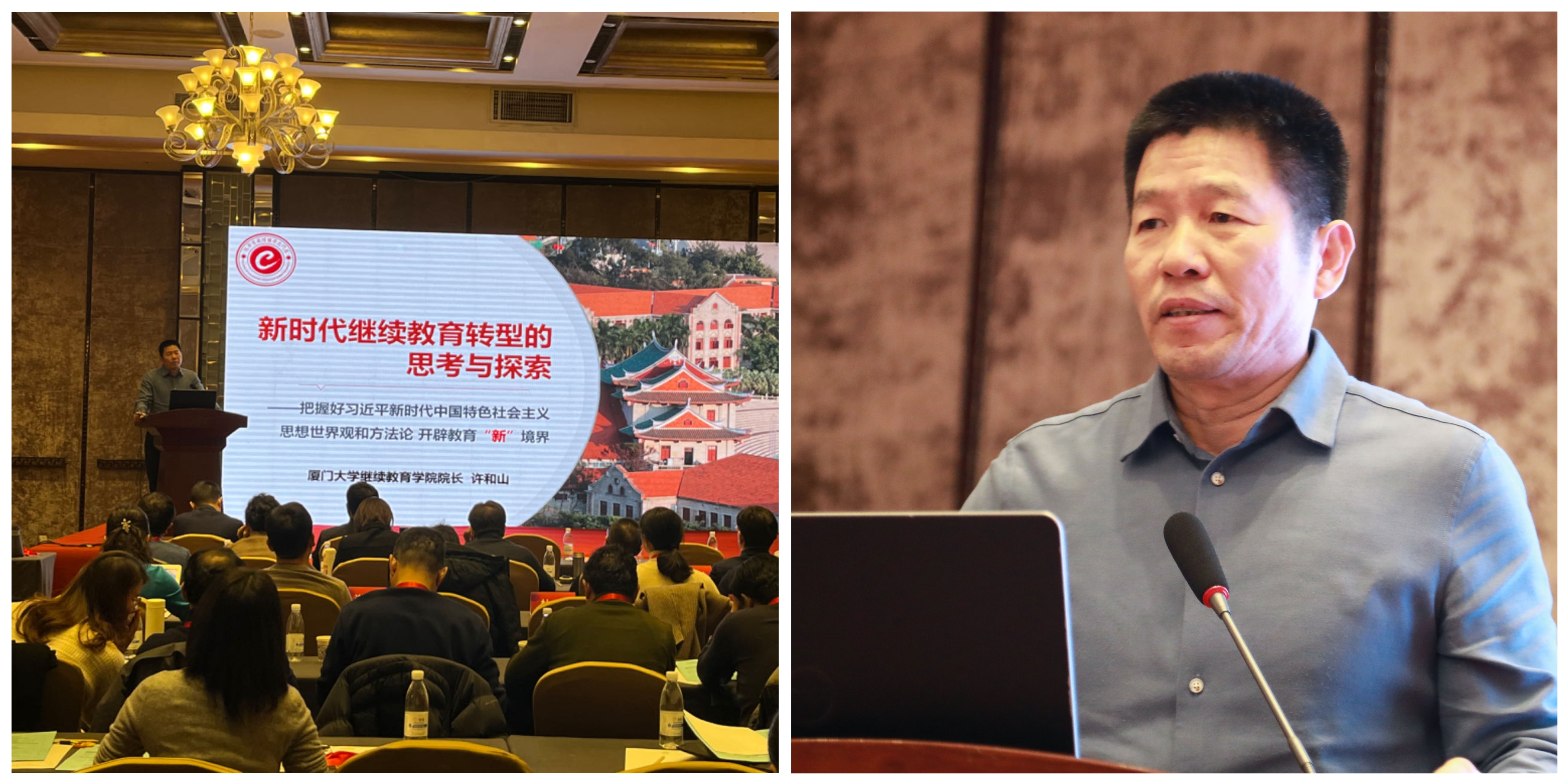 如何办好继续教育,他提出了五点实践路径:一是加强干部教育理论研究,做全国高校继续教育理论研究先锋;二是因时因势因地因校制宜,挖掘特色,培育非学历继续教育办学核心竞争力;三是强化干部教育主阵地作用,拓展教育覆盖面,建优建强继续教育东南中心;四是加大数字化终身学习资源建设投入力度;五是不断完善终身教育平台,强化社会服务办学职能。
