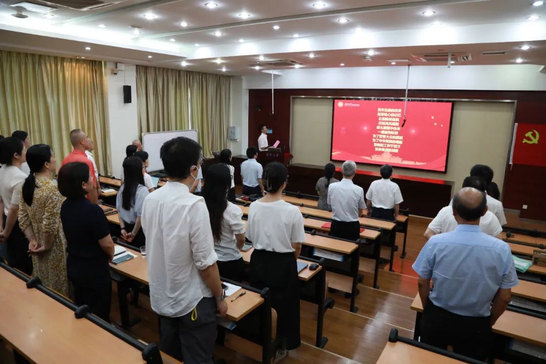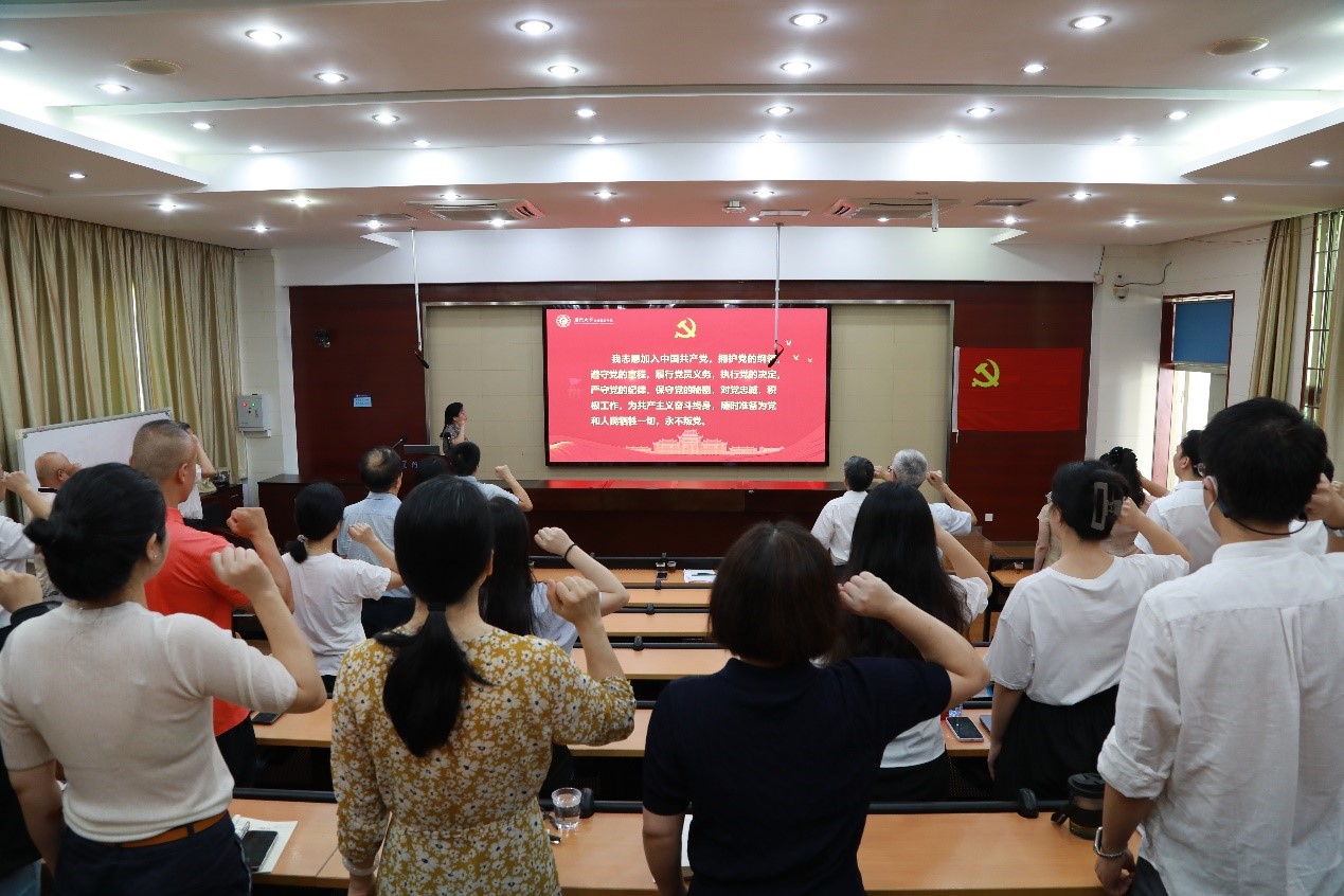 仪式过后,由学院党总支书记吴国瑛领誓,带领全体党员重温入党誓词,在一声声庄严宣誓中坚定“请党放心、强国有我”的庄严承诺,砥砺淬炼全心全意为人民服务真挚情怀。