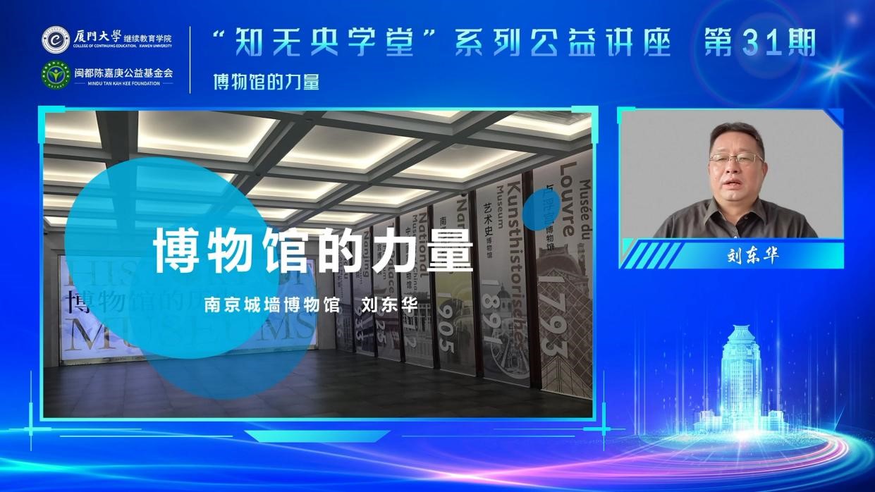 2024年10月26日晚,“知无央学堂”系列公益讲座第三十一期诚邀南京城墙保护管理中心党委书记、主任,二级研究馆员刘东华老师,作题为“博物馆的力量”讲座。