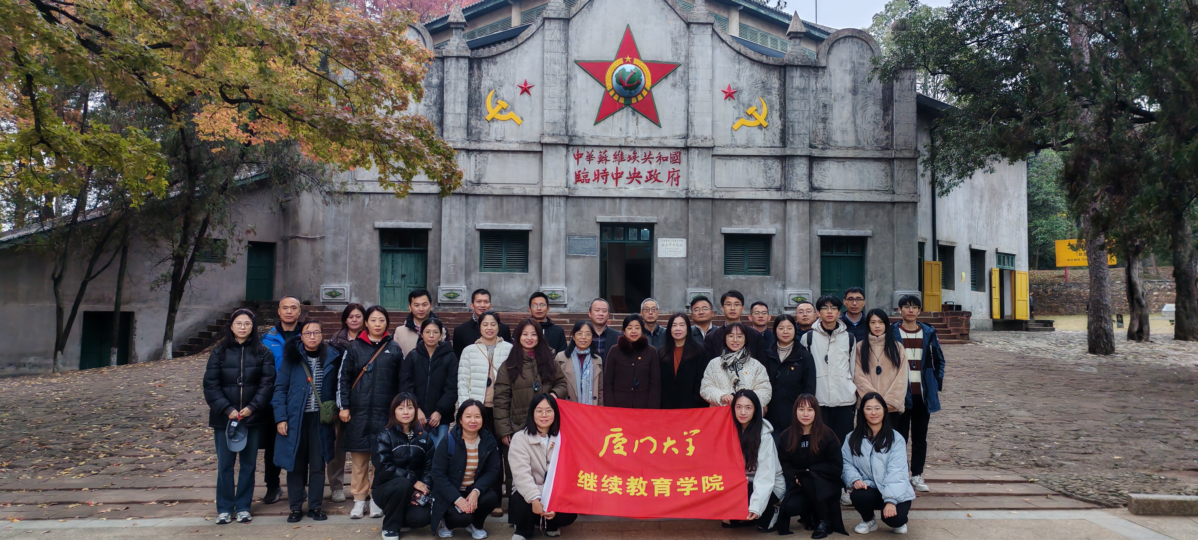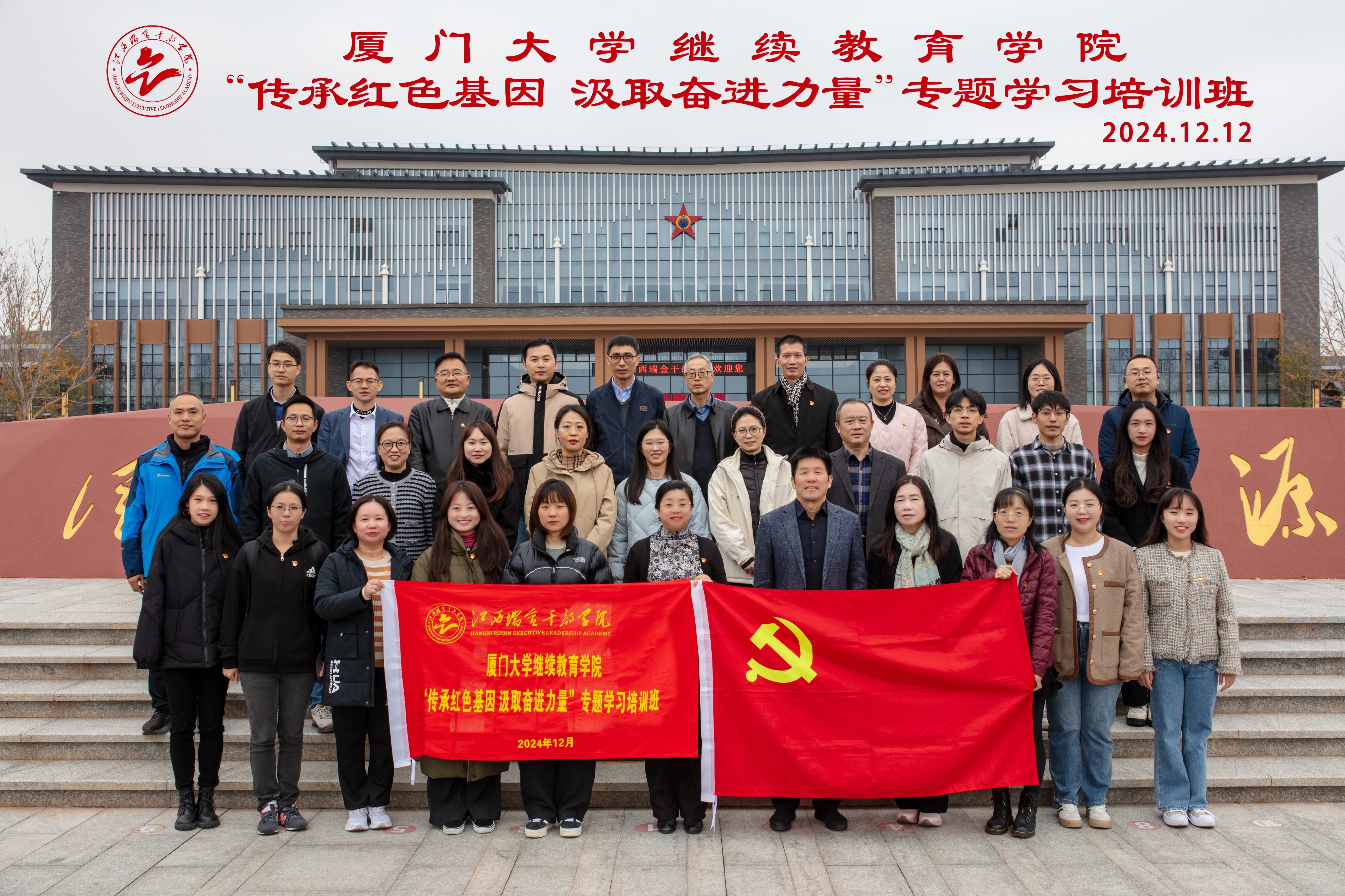 为深入学习贯彻习近平新时代中国特色社会主义思想,贯彻落实党的二十届三中全会精神和2024年全国教育大会精神,教育引导广大党员干部深刻领会苏区精神的深刻内涵,激发干事创业精气神,12月12日至14日,继续教育学院党总支组织赴江西瑞金干部学院开展“传承红色基因 汲取奋进力量”党员专题培训活动和学院2024年教职工思想政治与履职能力提升培训班(第四期)。本次学习活动由学院党总支书记吴国瑛带队,学院全体党员干部、入党积极分子及部分业务骨干参与。