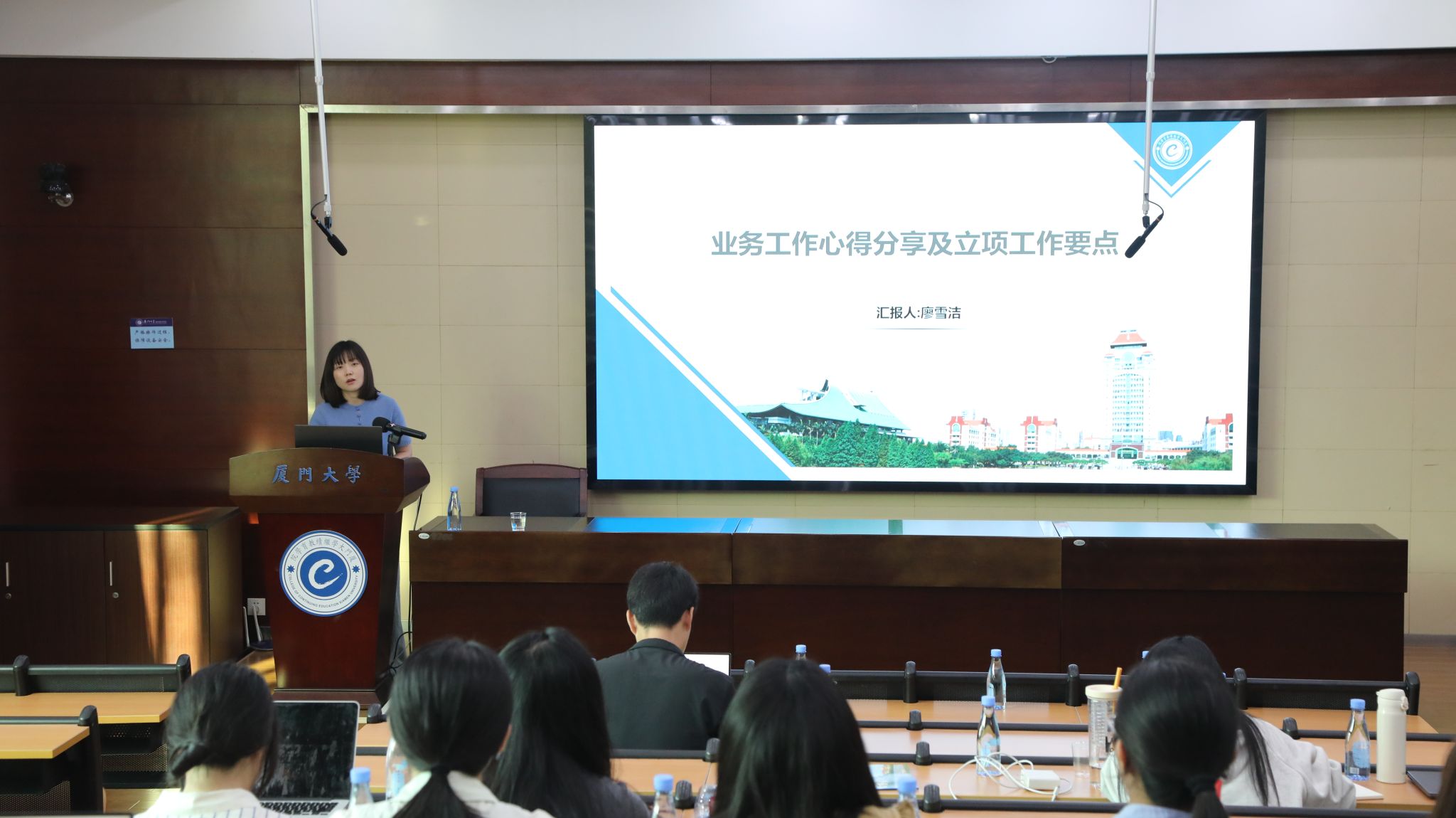 根据事业发展需要,学院近期正持续深化实施机构人事局部调整工作。面对继续教育转型发展的新形势、新要求,如何尽快熟悉新岗位,加快角色转化,提升适岗能力,本次培训专门安排学院业务骨干,教育与专技人才学习中心副主任廖雪洁作业务工作经验交流。作为工作沙龙第三期,本阶段培训专门开设答疑环节,廖雪洁结合过去非学历教育管理工作经验,为教职工在培训项目开拓、立项实施过程中存在的问题、需要注意的事项作解答和提醒。