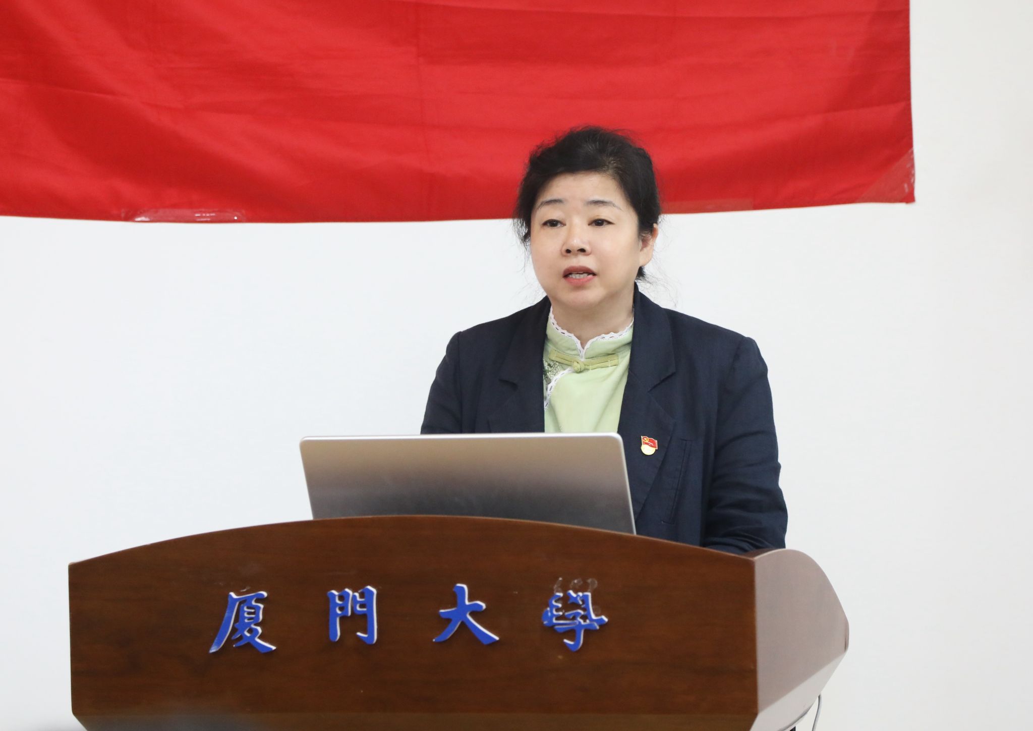 学院党总支书记院长吴国瑛讲话,代表学院党总支,向老一届在职教职工第二党支部委员会委员们的辛勤工作表示衷心的感谢,向新当选的支部委员会委员们表示祝贺。她指出,学院党支部要继续坚持以习近平新时代中国特色社会主义思想为指导,围绕“七个有力”履职担当,切实发挥出党支部战斗堡垒和党员先锋模范作用。她对新当选的支部委员会成员提出殷切希望:一是把自身建设摆在突出位置,将学习作为终身课题,带头学、带头悟、带头讲,不断增强用党的创新理论指导实践、推动发展的内化转化能力。二是切实提高政治站位,以身作则、率先垂范,团结党支部党员毫不动摇深入贯彻落实学院各项制度安排和重要决策部署。三是紧紧围绕学院中心工作,以高度的责任感和使命感,全力服务大局,大力弘扬“爱院如家”的奉献精神,从思想深处树立主人翁意识,在工作中主动担当作为,探索创新,有力带领党员群众通过科学管理、优化流程等方式,切实做到降本增效,为学院的高质量发展贡献力量。四是深化作风建设,持之以恒地严格落实中央八项规定精神,时刻保持清醒头脑,清正廉洁做好表率。