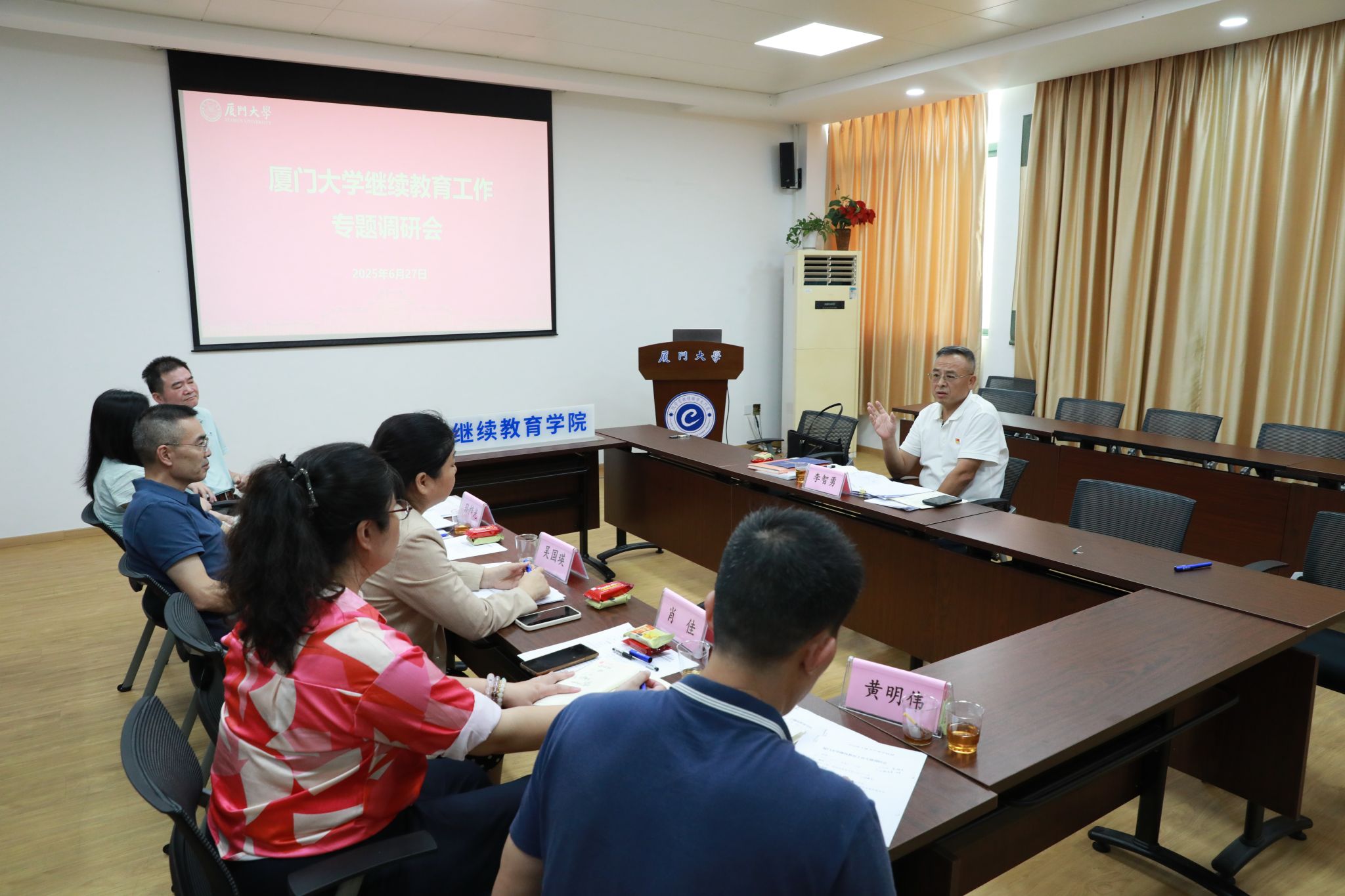 在听取工作汇报和交流讨论后,李智勇就本次专题调研作讲话。他强调,构建泛在可及的终身教育体系是提升教育效能和服务教育强国战略的重要路径,作为“双一流”高校,要紧密围绕建成教育强国战略目标,找准继续教育的定位,加强统筹协调,主动担当作为,不断提升服务区域经济发展能力。要坚持问题导向,对标先进做法,各相关部门和学院要加强团结协作,优化继续教育工作机制,积极为推动学习型社会、学习型大国建设作出厦大贡献。