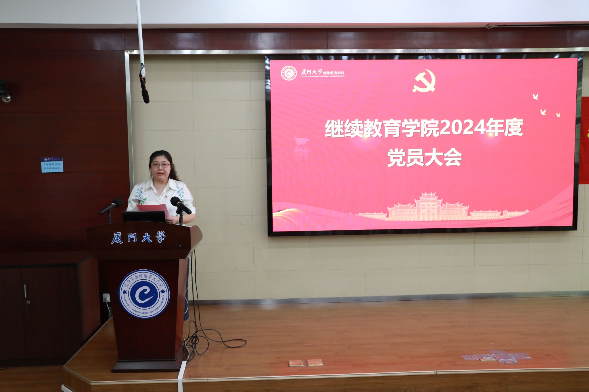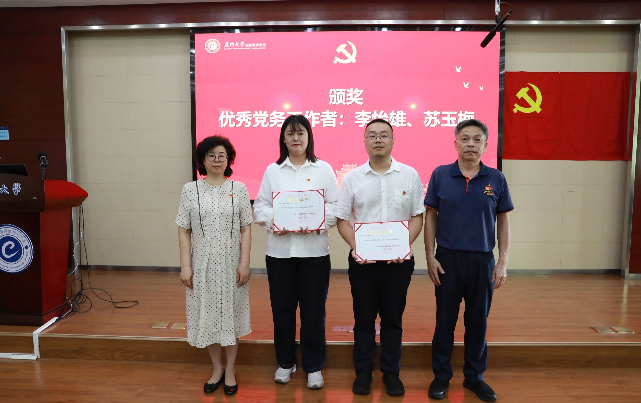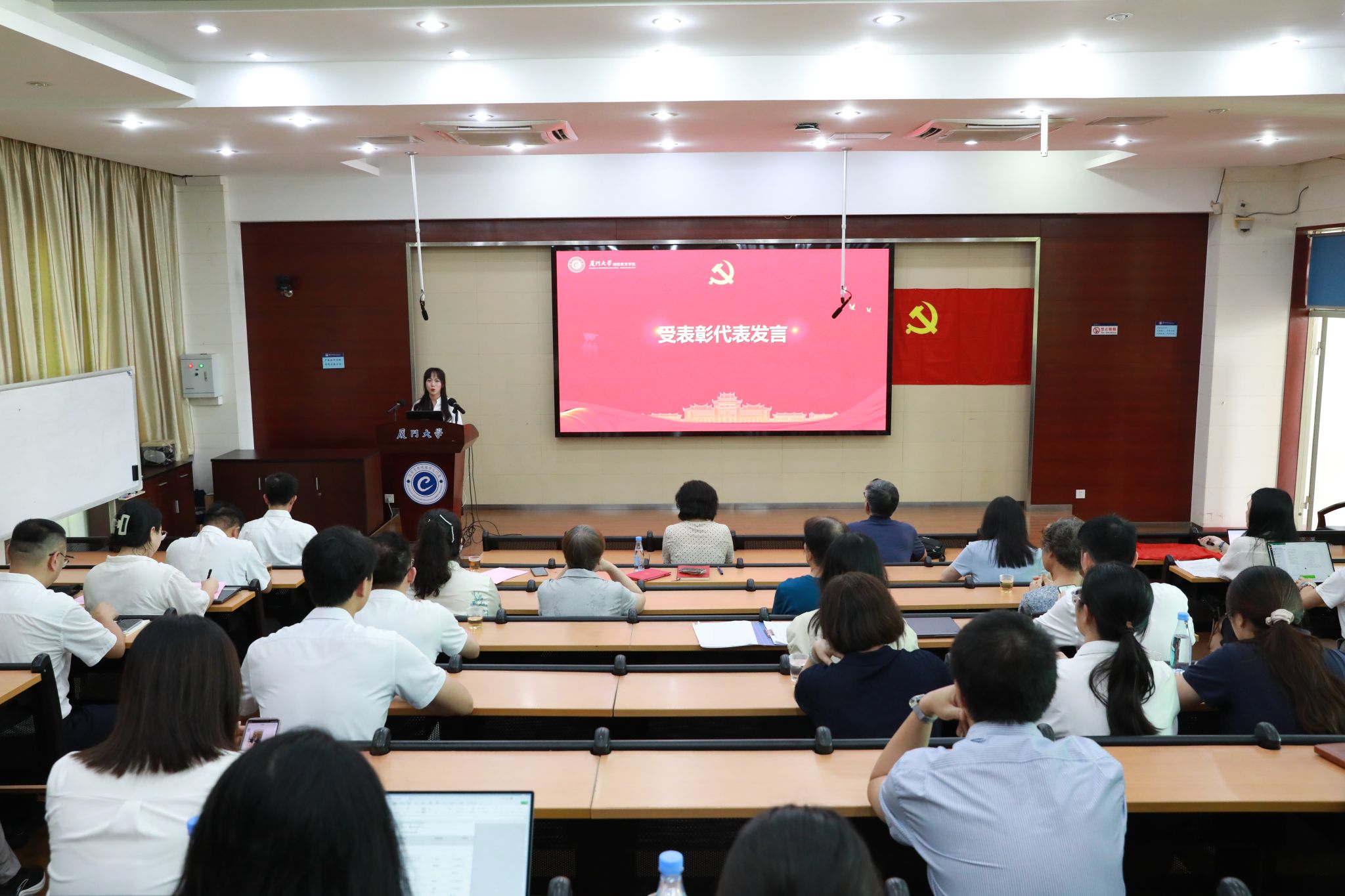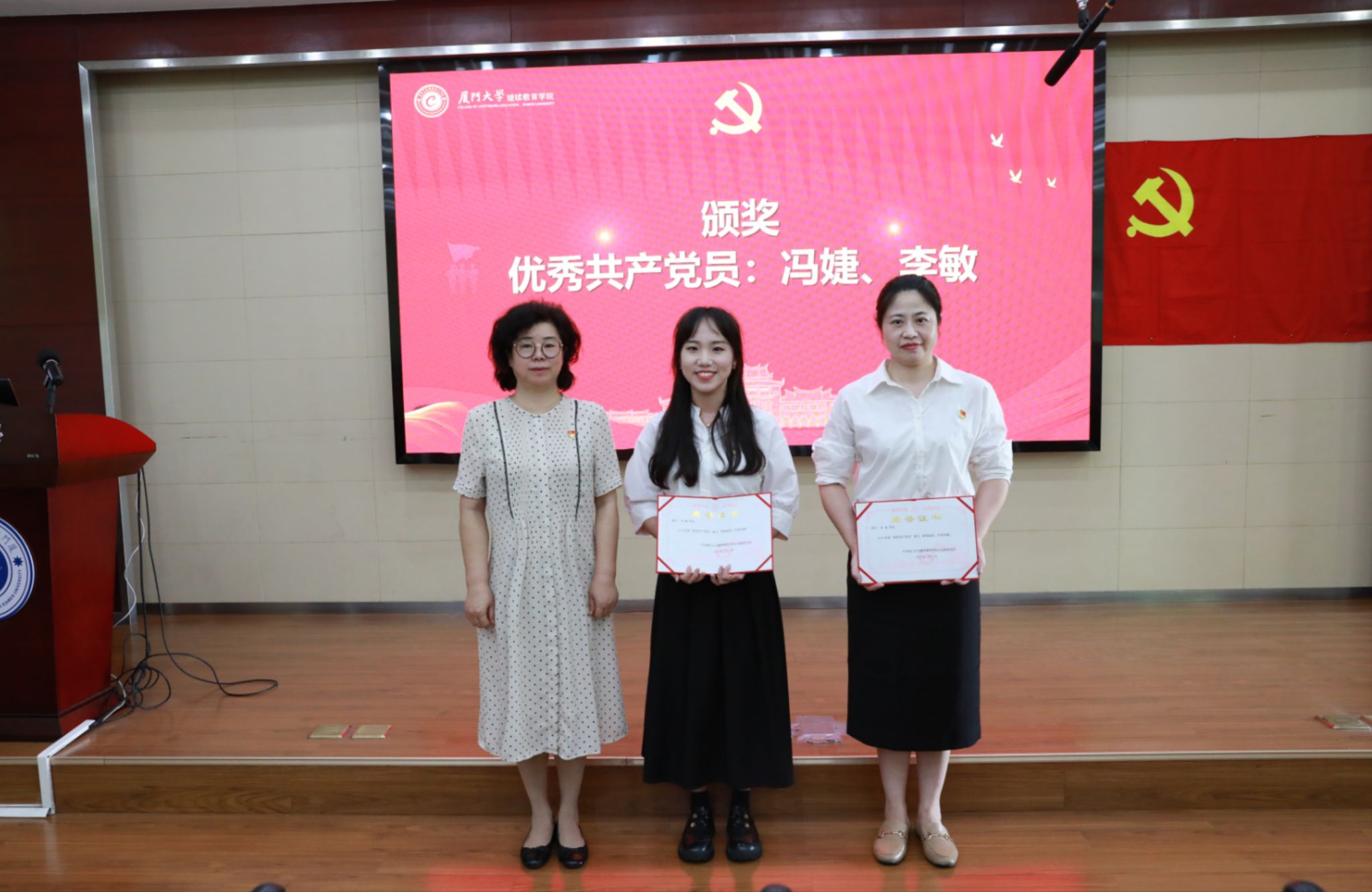 优秀共产党员代表冯婕、优秀党务工作者代表李怡雄依次上台发表感言,从自身实际经历出发,向全体党员分享如何充分发挥好一名中国共产党党员的先锋模范作用,自觉加强理论学习,提升个人党性修养,始终以高度的政治责任感和使命感,立足岗位、积极进取、勇挑重担,为继续教育事业的高质量发展贡献力量。
