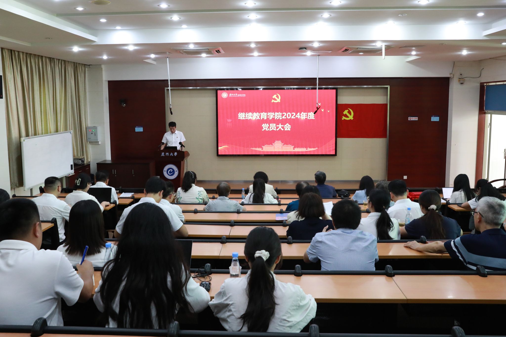 7月14日,继续教育学院在学院102报告厅召开2024年度党员大会。会议表彰了一批学院各个工作岗位涌现出优秀共产党员和优秀党务工作者。学院党政领导班子成员、全体党员参加了会议。校基层党建工作联络员郑建华列席指导。会议由学院党总支副书记黄明伟主持。