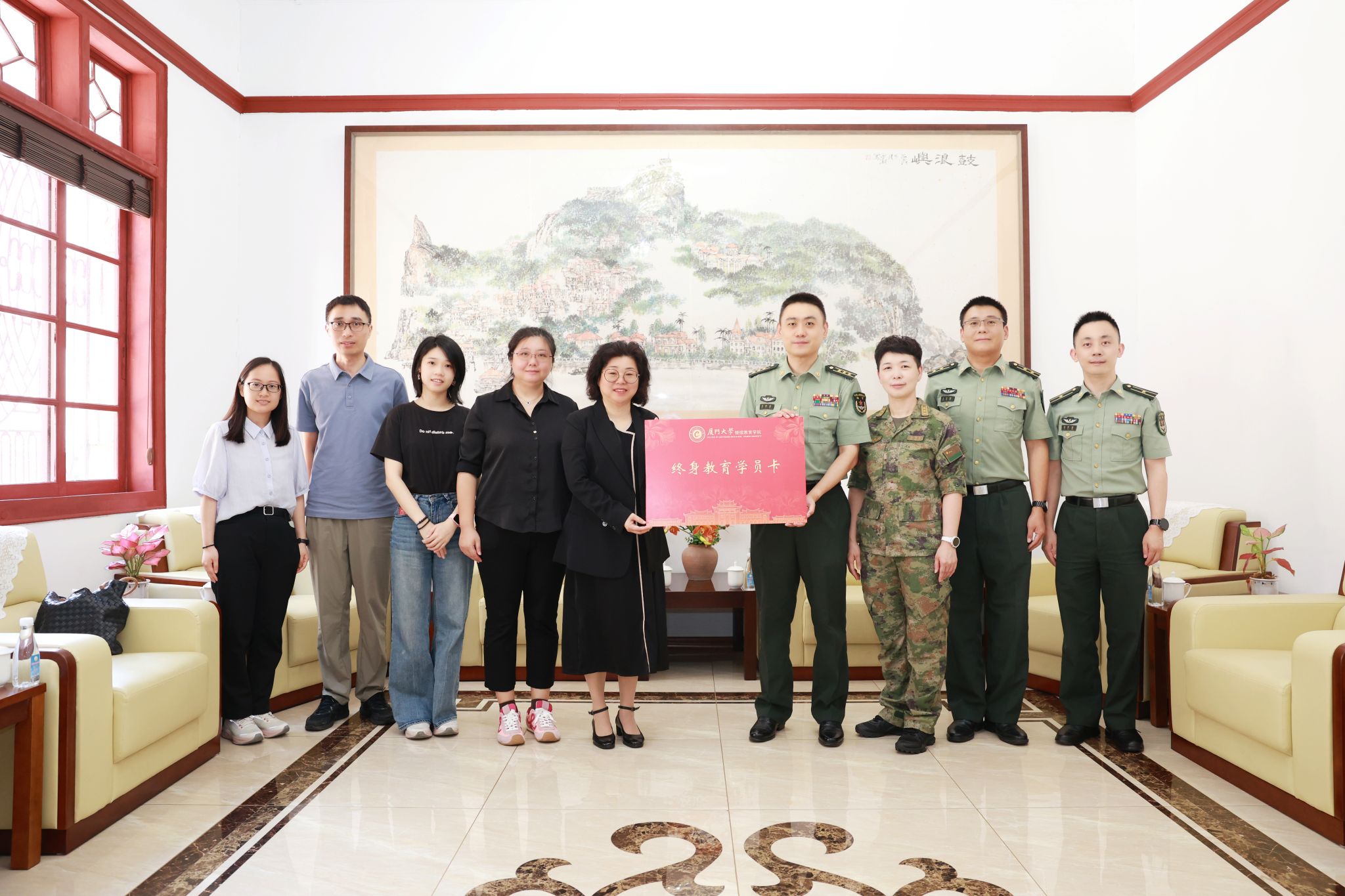 为表达关心支持,学院特向医院赠送了一批厦门大学继续教育学院终身教育学员卡,旨在为官兵及医护人员提供更便捷、优质的终身教育资源和服务,助力其提升综合素质,更好服务国防和医疗事业。活动中,双方就进一步深化合作共建、满足官兵及医护人员终身学习需求进行了深入交流。