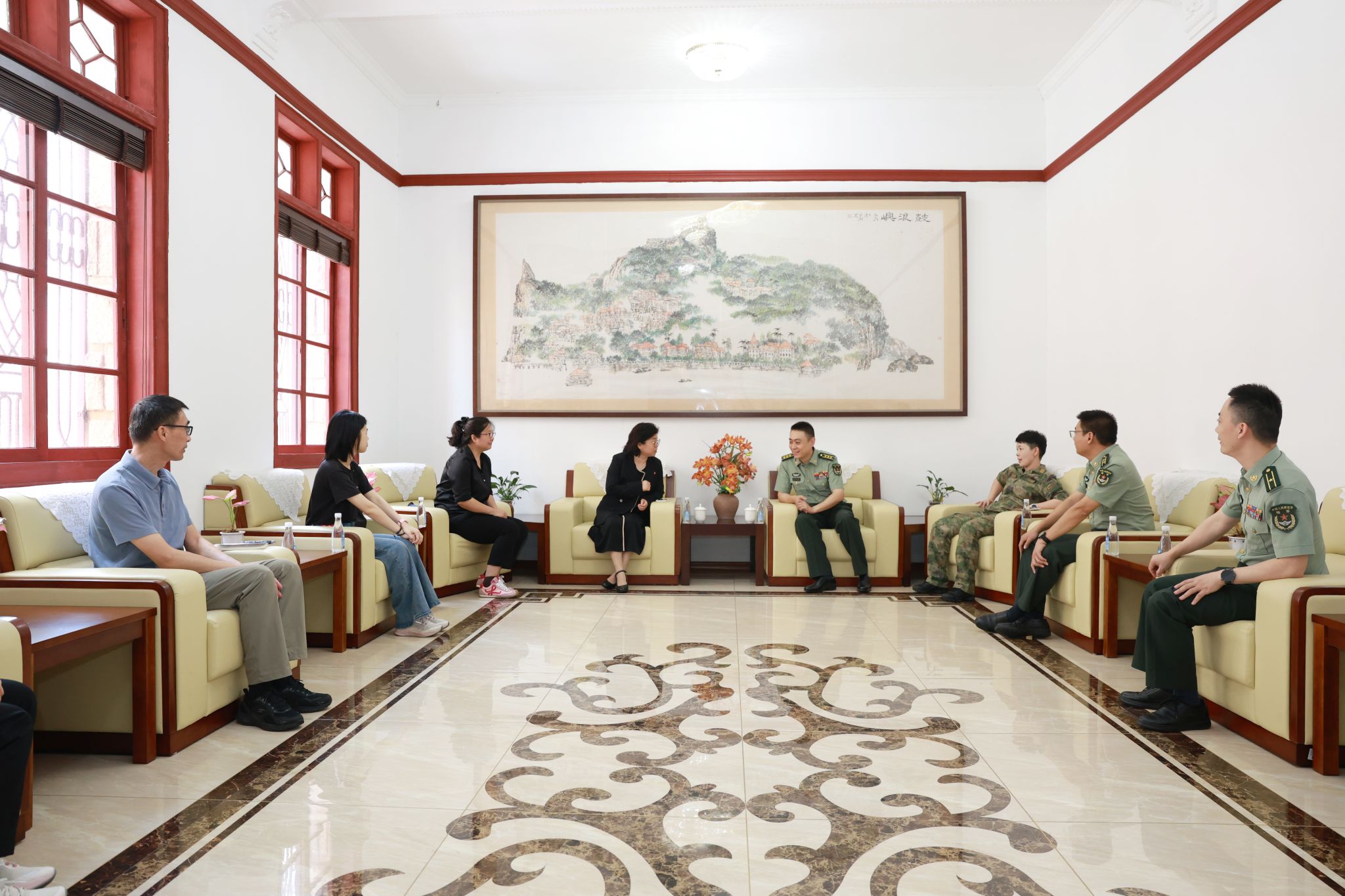 在部队驻地,吴国瑛书记院长代表学院向部队官兵致以节日问候,并对官兵们为守护国家安全和地方稳定付出的辛勤努力表示衷心感谢。她强调,支持部队建设、服务强军事业是学院义不容辞的责任。