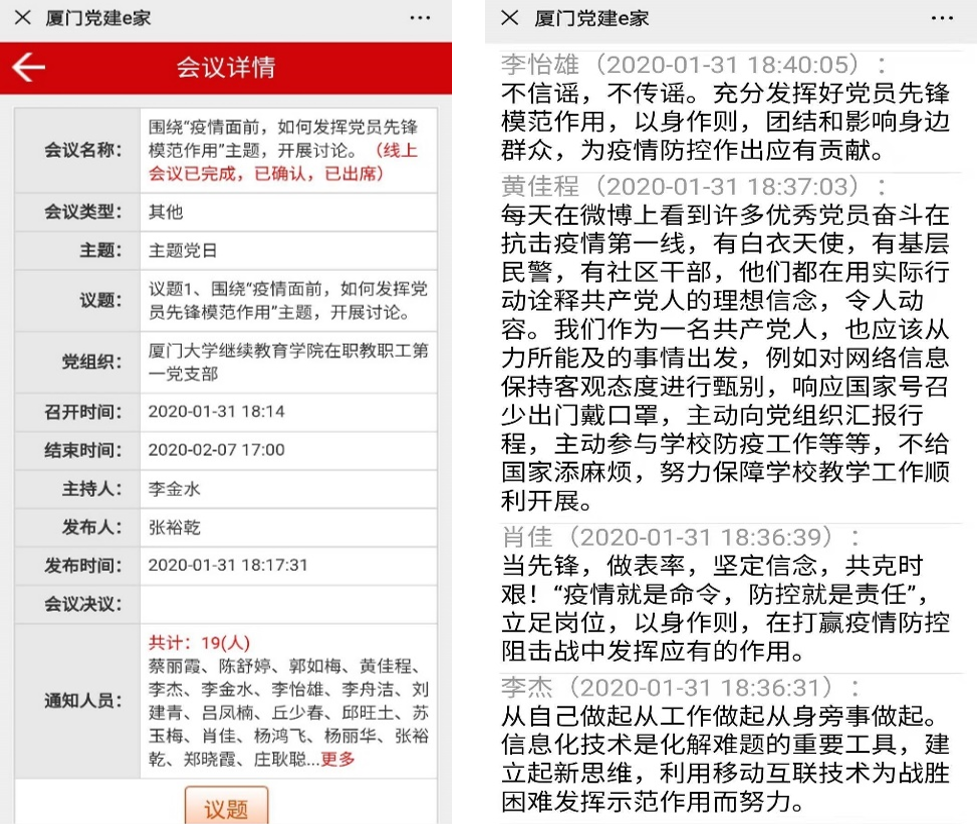 重引导。学院各党支部在党总支的指导下也充分发挥好战斗堡垒作用,积极运用厦门党建e家、学习强国等平台组织学院党员开展各类学习,并组织如“疫情面前,如何发挥党员的先锋模范作用”等主题活动,鼓励支部党员通过树信心、表决心,切实增强“四个意识”、坚定“四个自信”、做到“两个维护”,不断加深对初心和使命的认识,让党旗在防控疫情斗争第一线高高飘扬。