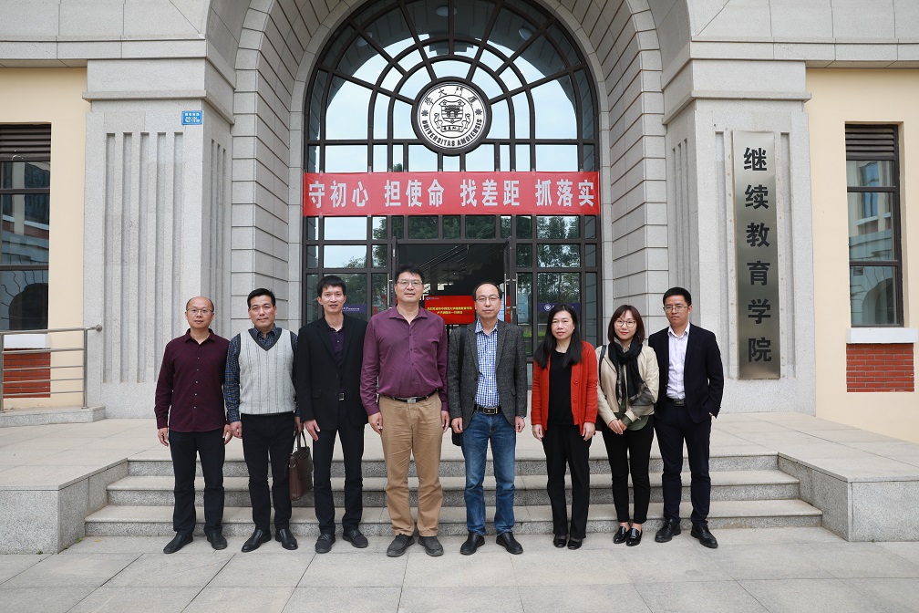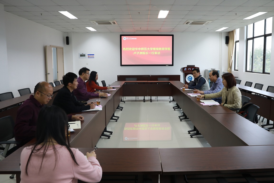 12月19日下午,华中师范大学继续教育学院院长卢子洲、办公室副主任宋卫东、教务部副主任常莉一行到访我院,就继续教育工作进行座谈交流。我院院长夏侯建兵、副院长郭如梅、副院长黄明伟、资源建设与技术保障部主任施当波出席座谈。
