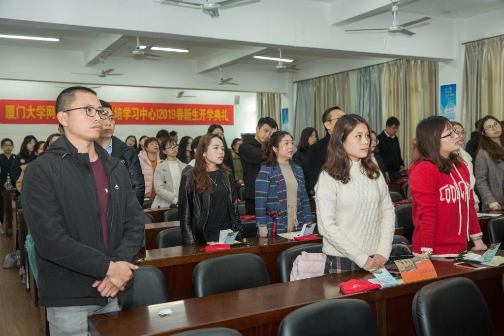 3月24日上午,泉州市科技培训中心学习中心2019春网络教育新生开学典礼隆重举行。“厦门大学网络教育2019春季新生开学典礼现在开始!”主持人话音刚落,雄壮的国歌声响起,参加开学典礼的2019春新生难掩内心激动之情。从这一刻开始,他们便正式跨入梦寐以求的厦大,成为了厦大人。