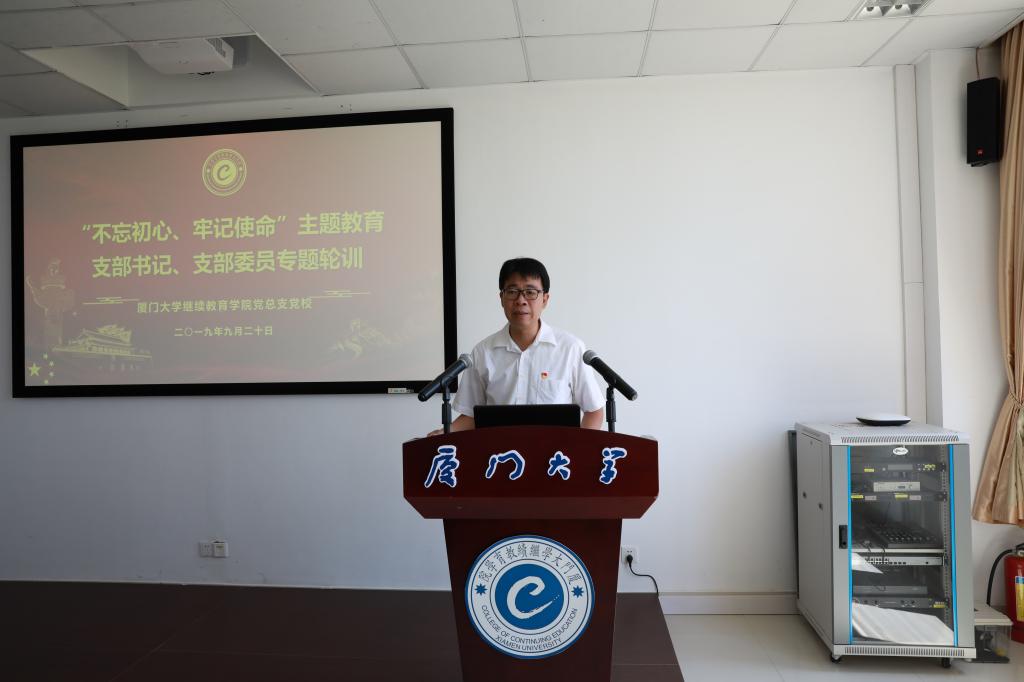 9月20日上午,我院党总支党校在南存钿楼A202会议室开展“不忘初心、牢记使命”主题教育支部书记、支部委员专题轮训。学院党总支书记邱旺土为主讲人,在职教职工第一党支部、在职教职工第二党支部及离退休党支部的支部书记、支部委员参加轮训。