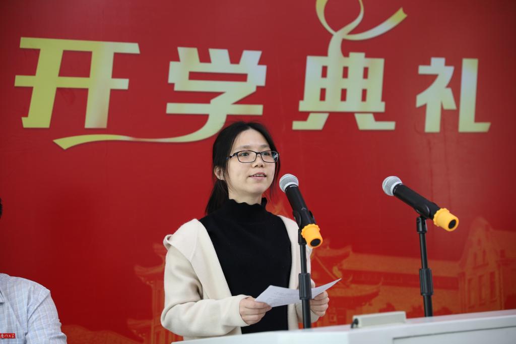 李智代表授课教师,从专业教师的角度,为新同学们解读了“大学学习”的本质和“大学教师”的作用,同时进行了大学学习方法的指导,她从服务社会、完善品格、全面发展的奋斗目标出发,希望同学们转变学习方式,通过主动学习,不仅能收获知识和毅力,更能塑造自身理性独立的人格,形成积极进取的人生态度和从善如流的价值理念,适应时代发展需求,实现自我人生价值。