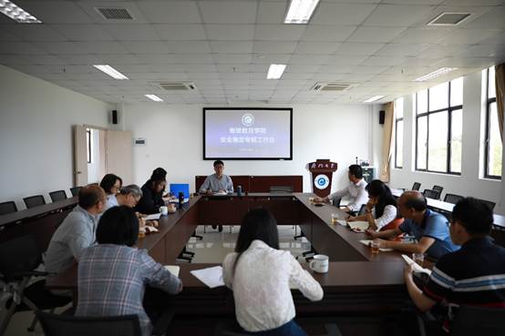 会上,邱旺土首先传达了4月26日在我校召开的学校安全稳定工作会议精神,围绕新形势下学校对火灾防治、食品安全、实验室安全、生产安全、防风防台等重点安全工作的相关部署,对意识形态、网络安全等方面提出的要求,安排布置了我院进行安全自查自纠的工作任务。他强调,学院安全稳定工作是做好学院一切工作的前提和基础,要牢牢绷紧安全这根弦,把维护学院安全稳定工作摆上突出位置。要切实强化红线意识、底线意识,在学院各项工作的关键节点上严格比对要求,贯彻落实好有关安全稳定工作的规章制度。