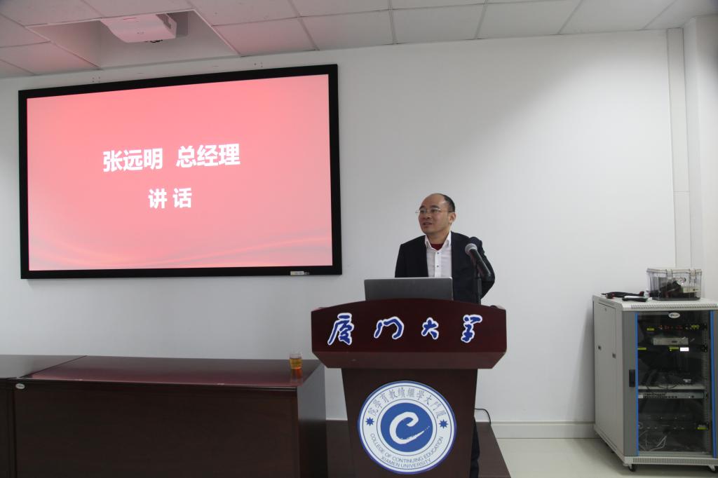 随后,互联天下公司张远明总经理发表讲话,感谢学院对平台建设技术工作的支持、配合和肯定,并表示公司会进一步加强平台建设力量,持续完善和优化平台功能,深化与学院的合作。