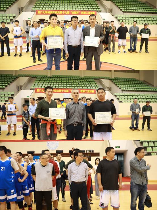 回顾整个赛程,这不仅仅只是我院篮球队员们的荣耀,更是我院集体的团结勋章。学院党总支书记邱旺土、党总支副书记杨鸿飞虽未参加比赛,但每逢赛事,大家总能在观战台上看到他们的身影。学院其他教职工们也经常自发带着家属,从各个地方赶赴现场加油助威,不遗余力做好一切后勤保障工作:水、食物、医疗急救装备…。每一声加油,都在向全场宣告着这不仅仅是场上篮球队员的比赛,而是我们学院团结一心、齐心协力的战斗。每一次赛后留影,都在诠释着我们继续教育学院团结奋进的精神内涵。