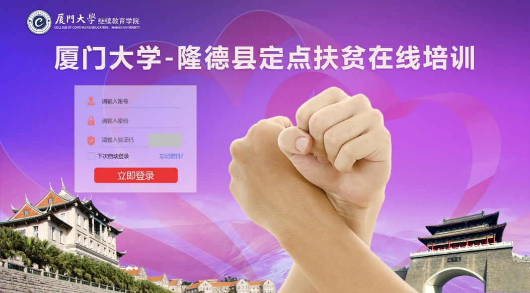 厦门大学继续教育学院依据学校扶贫工作总体部署,深刻学习领会习近平总书记关于扶贫开发工作的系列重要讲话精神,深入贯彻落实党中央、国务院、教育部以及学校的工作部署,以高度的政治责任感和使命感,用“实”的精神和态度落实扶贫培训服务工作。在疫情防控特殊时期,为支持隆德县做好疫情防控、复工稳岗等各项工作,我院创新工作思路,丰富智力扶贫模式,充分发挥学院资源、平台优势,为隆德县量身定制“厦门大学-隆德县定点扶贫在线培训”项目,面向隆德县各党政机关行政管理人员与技术人员、中小幼教师与教育管理人员、卫生系统工作人员、各村村干与村民等提供疫情防控专题、思政专题、计算机专题等共超过40学时的专题课程,支持学员随时随地学习,实现自我提升。项目于5月10日正式启动。