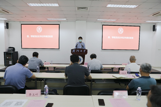 邱旺土代表学院党总支作表态发言。他表示,全院上下务必认真领会讲话精神,进一步深化认识、提高站位,切实增强政治巡察的政治自觉、思想自觉、行动自觉,主动接受巡察;认真对待、积极配合,以高度的政治责任感和严肃认真的态度坚决拥护、全力支持配合校党委巡察组开展工作;虚心接受巡察组反馈的意见和建议,问题导向积极做好整改落实。全体教职工要以此次巡察工作为契机,持续巩固扩大巡察整改成果,推动全面从严治党向纵深发展,把巡察成果转化为推进学院又好又快发展的强大动力,推动学院各项工作再上新台阶,以更加昂扬的精神状态为实现百年厦大奋斗目标而努力。