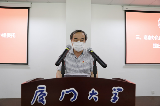 根据校党委统一部署,2020年5月15日上午,中共厦门大学第十一届委员会第四轮巡察工作第一巡察组巡察继续教育学院工作动员大会在翔安校区南存钿楼C101教室召开。校纪委副书记、纪委办主任、巡察办主任林金枝,校党委第一巡察组组长、校党委委员、机关党委书记梁卫中,校党委第一巡察组副组长、化学化工学院原党委副书记潘宝柱,巡察组成员林金宝、袁国柱、杜海林、黄辉、黄旻敏、朱少龙等出席大会,大会由继续教育学院院长夏侯建兵主持,学院党政领导班子成员、离退休同志代表及全体在职教职工参加了大会。