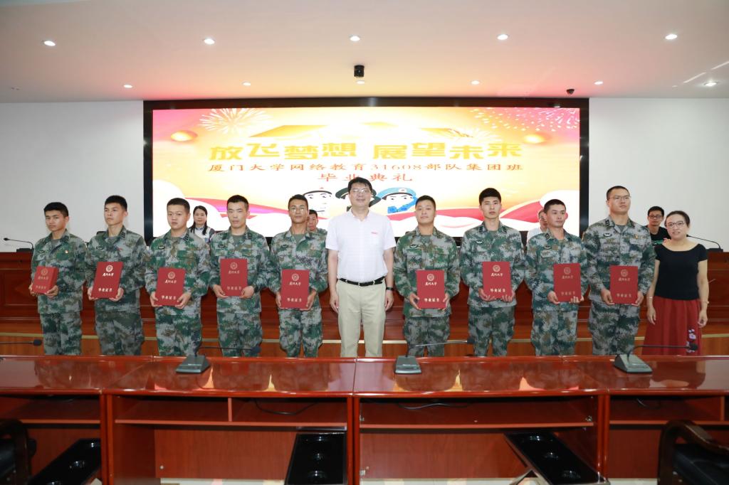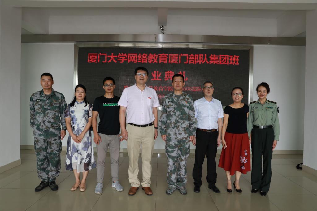 2020年6月5日上午9:00,厦门大学继续教育学院在厦门灌口驻厦某部队演播大厅隆重举行厦门大学网络教育部队集团班2020年毕业典礼。厦门大学继续教育学院院长夏侯建兵、驻厦某部队副政委罗光、驻厦某部队保卫科科长路雅强、厦门大学继续教育学院学历教育中心主任李金水等老师出席了毕业典礼。典礼由部队保卫干事黄颖主持。